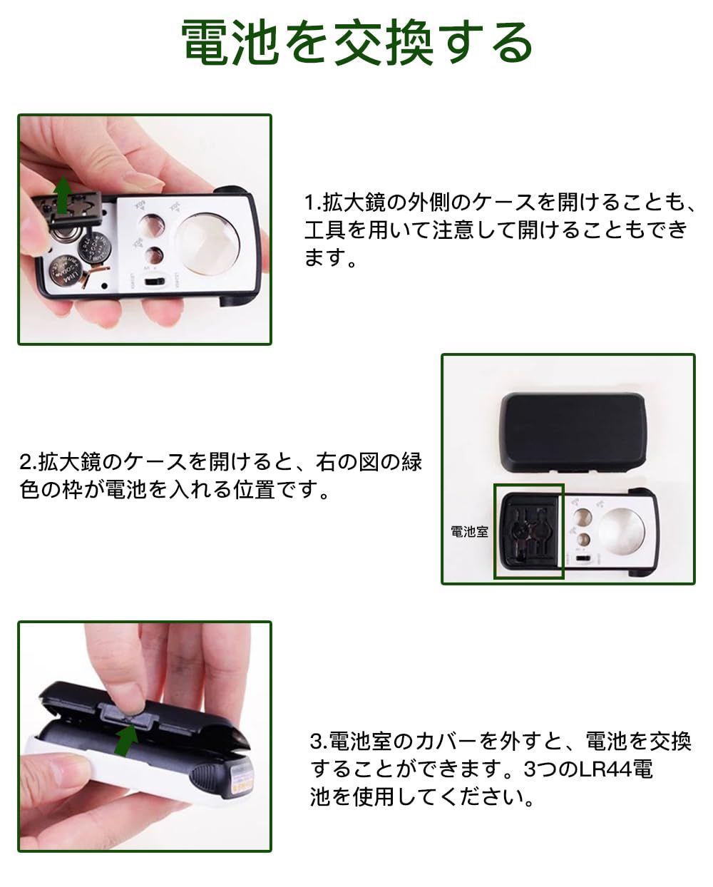 【電池使用】ボタン電池LR44×3(付属)リールーペ