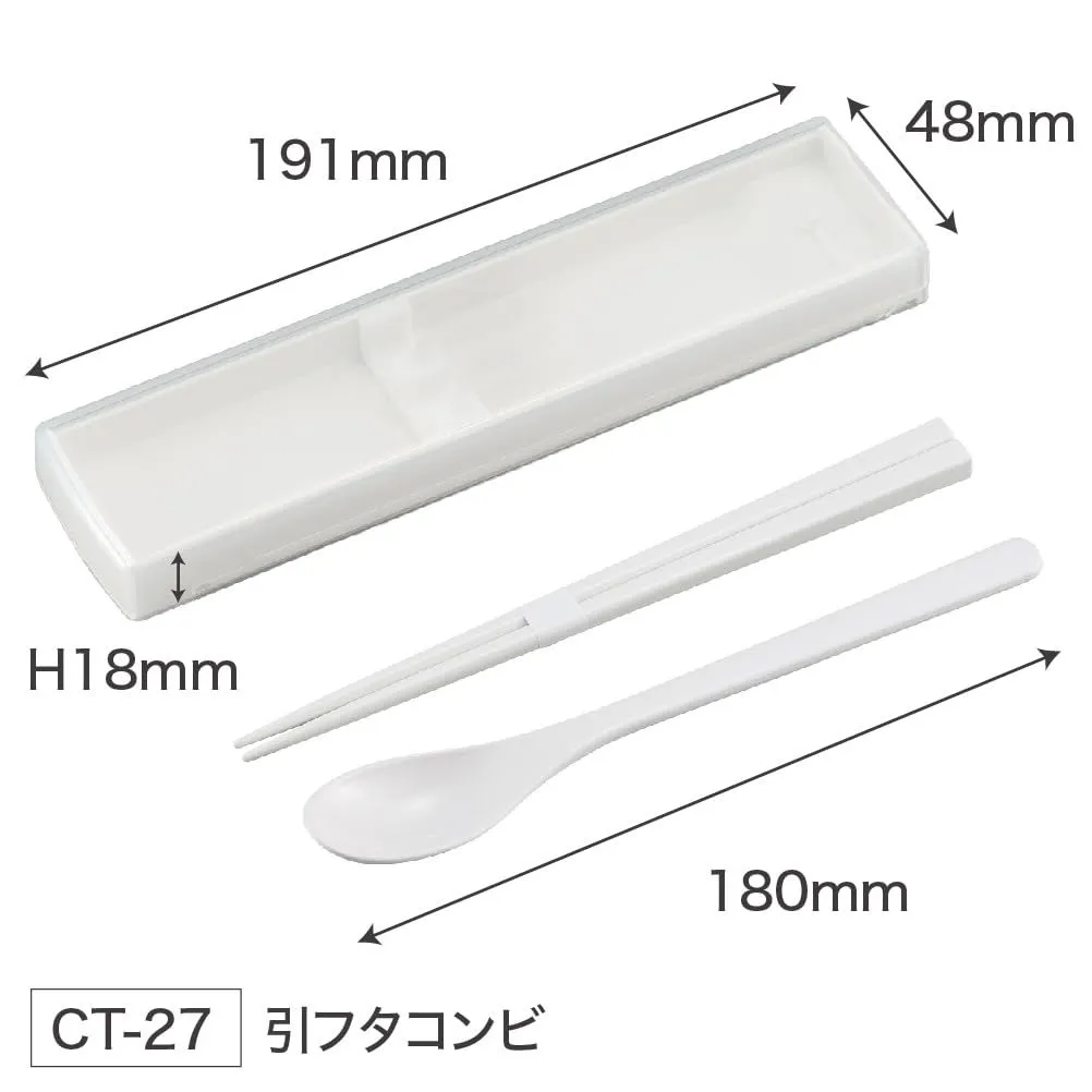 ・シリコーンパーツ付きでカチャカチャ音がならないお箸とスプーンのカトラリー2点セット。 ・サイズ=ケースサイズ:48×191×H18mm ・素材・材質:本体・スプーン=ABS、フタ=AS、箸=PMMA ・生産国=日本 、セット内容・付属品:18cmの箸・スプーン ・食洗機:○、抗菌(抗菌加工部分:ケース本体・箸・スプーン/抗菌剤の種類:銀等無機抗菌剤)