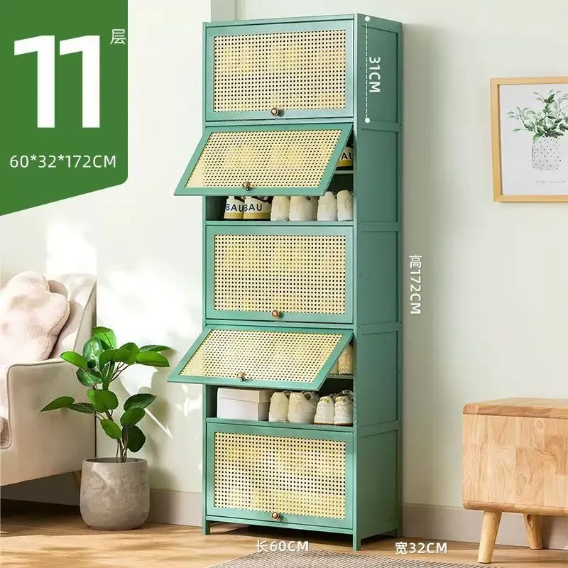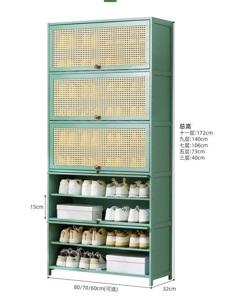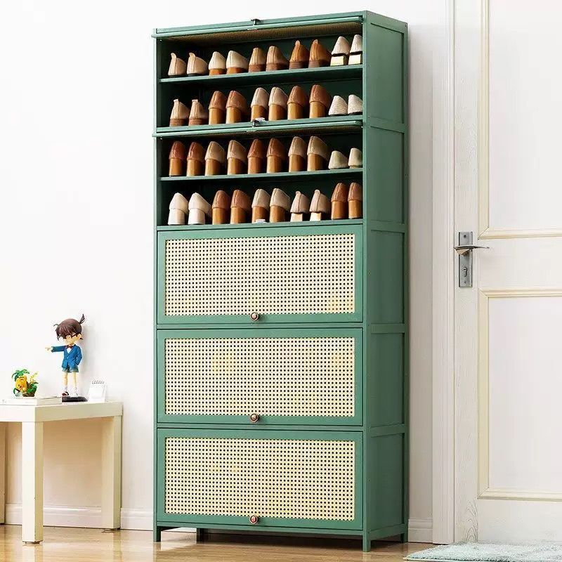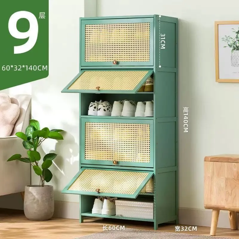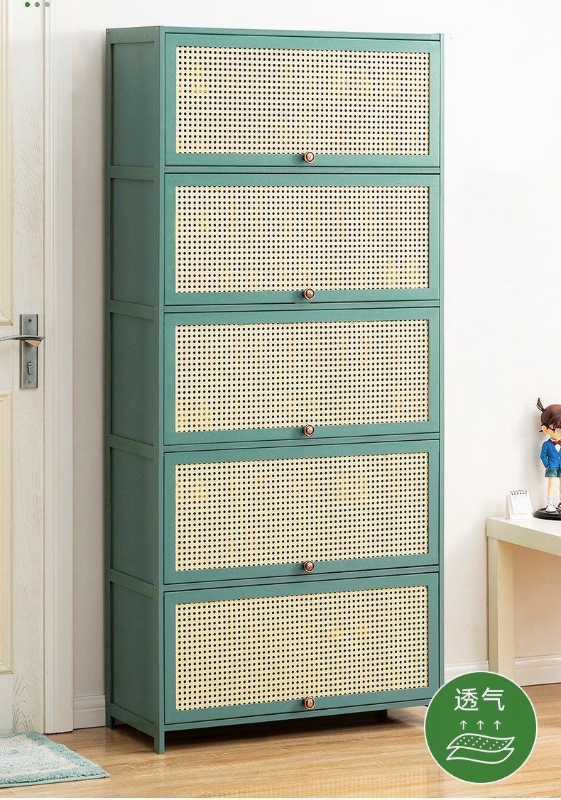 大好評☆下駄箱竹製大容量靴置きシューズラック省スペースシューズキャビネットおしゃれ収納棚扉付き通気?防臭防塵クローゼット靴収納キャビネット玄関収