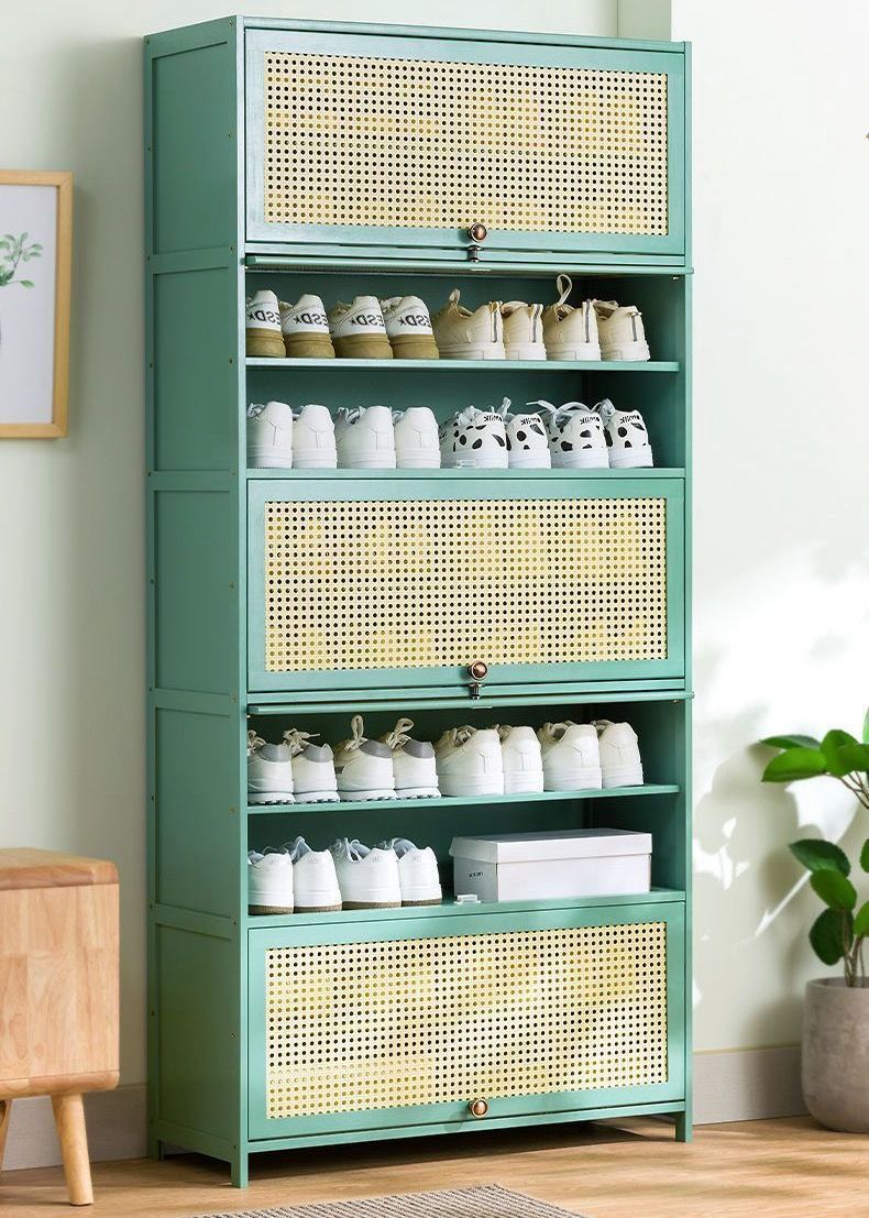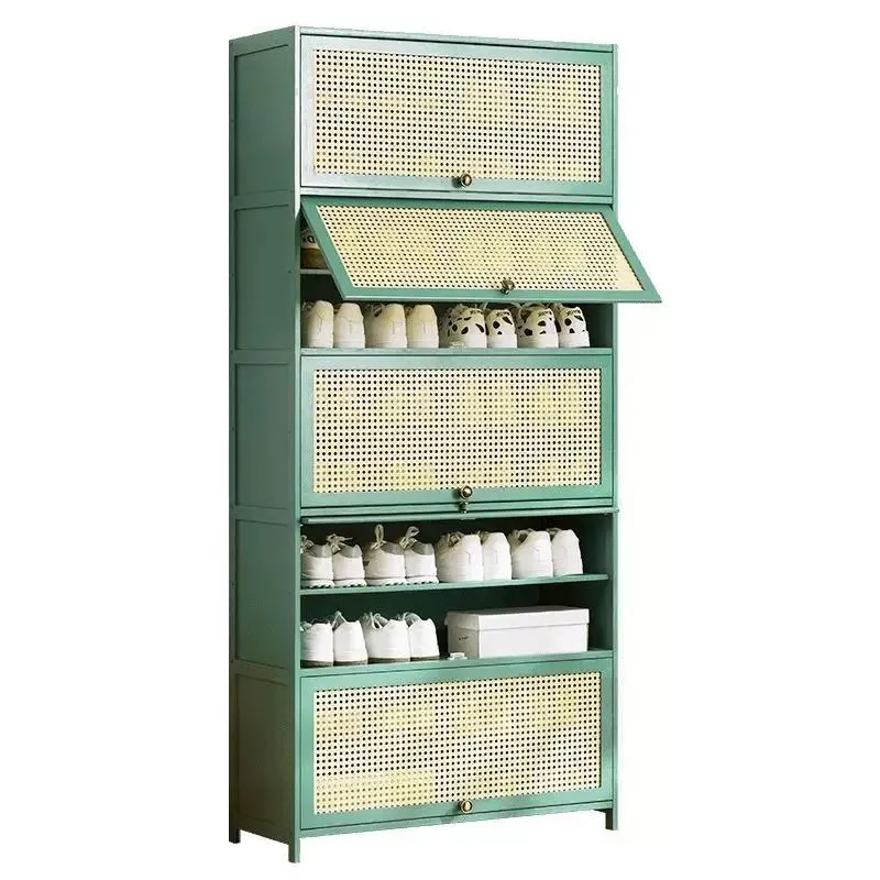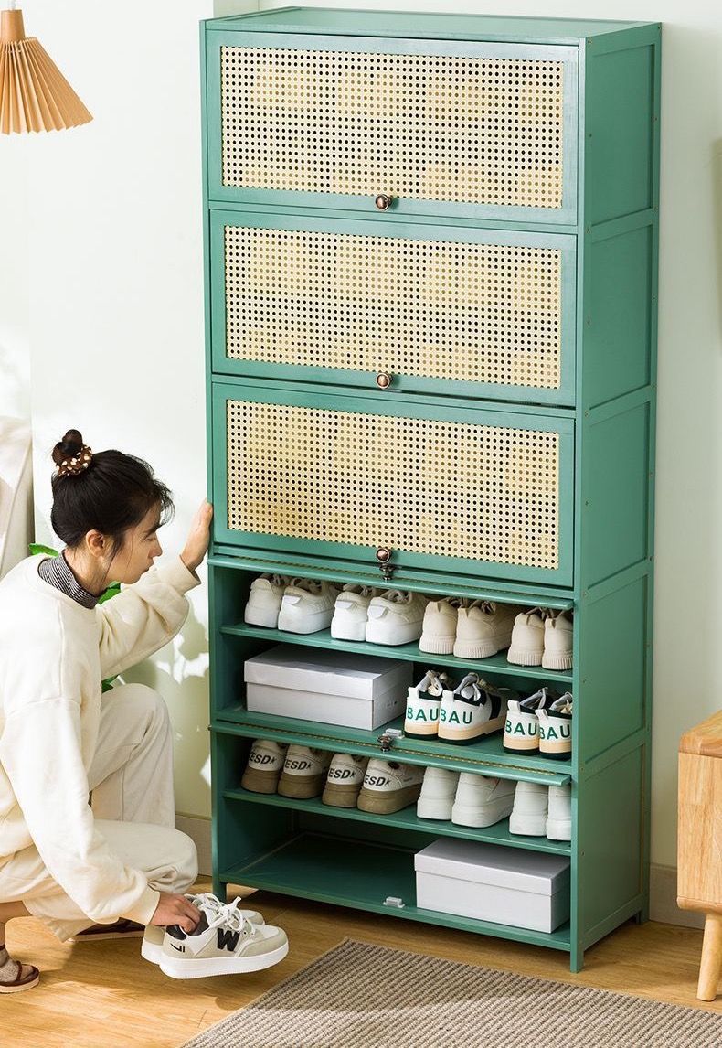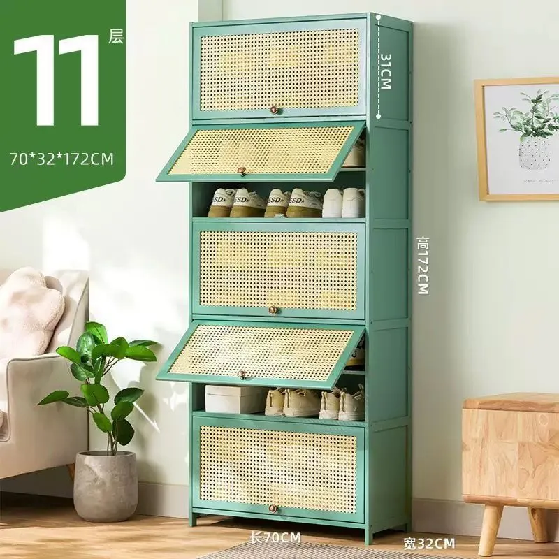 大好評☆下駄箱竹製大容量靴置きシューズラック省スペースシューズキャビネットおしゃれ収納棚扉付き通気?防臭防塵クローゼット靴収納キャビネット玄関収