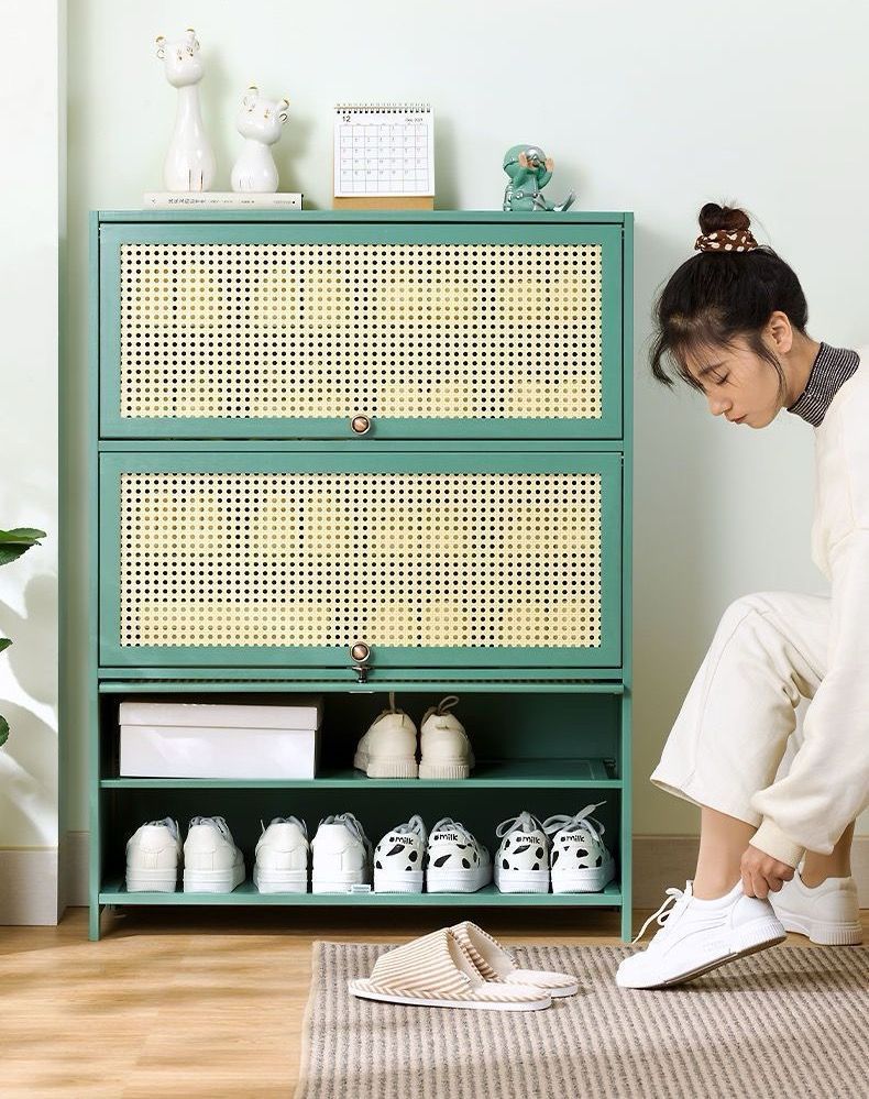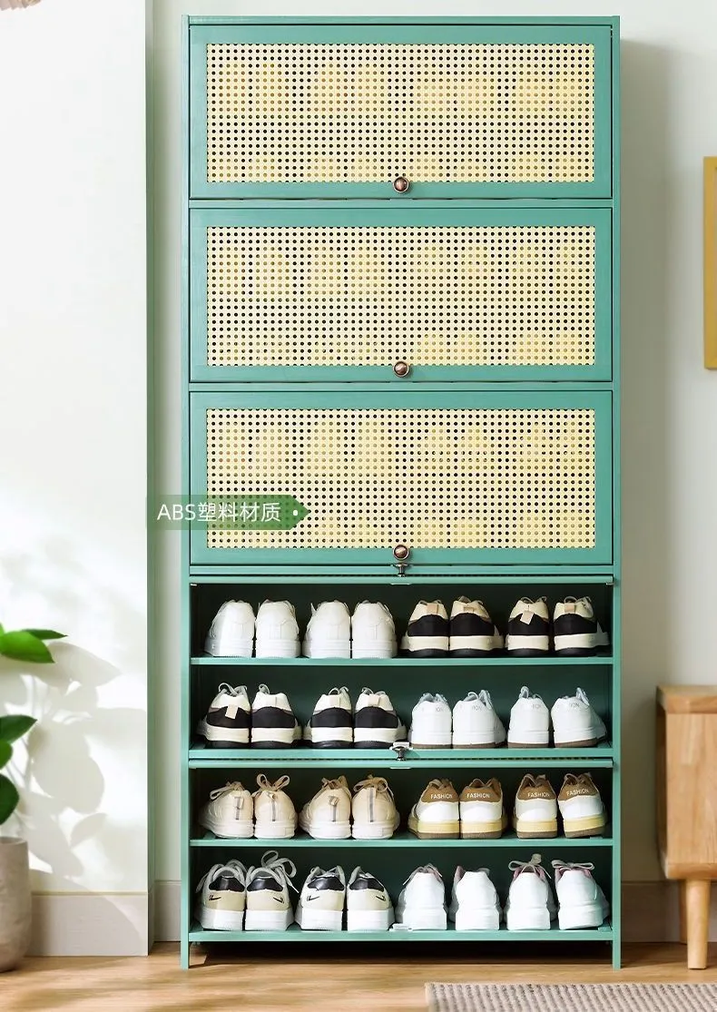 【メッシュフラップデザイン】フリップドアデザイン、ワンプル、ワンプッシュでキャビネットドアを隠して衝突を防ぎ、安全でスペースを節約します。 キャビネットのドアはホバリング可能で、靴を展示でき、持ち運びも簡単です.メッシュドアのデザインはプライバシーも保護できます.メッシュドアはABSエンジニアリングプラスチック素材でできており、空気穴が狭く、美しく通気性があり、便利です.キャビネット内の空気循環と防塵 湿気やニオイを分散させ、靴を守ります。