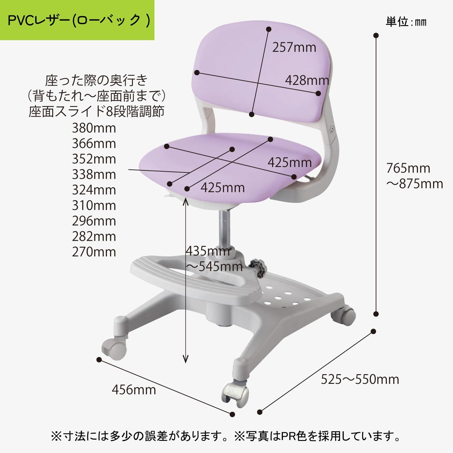 特徴1/座面は高さ無段階調整と前後にスライド11cmでき、成長に合わせてご使用になれます。