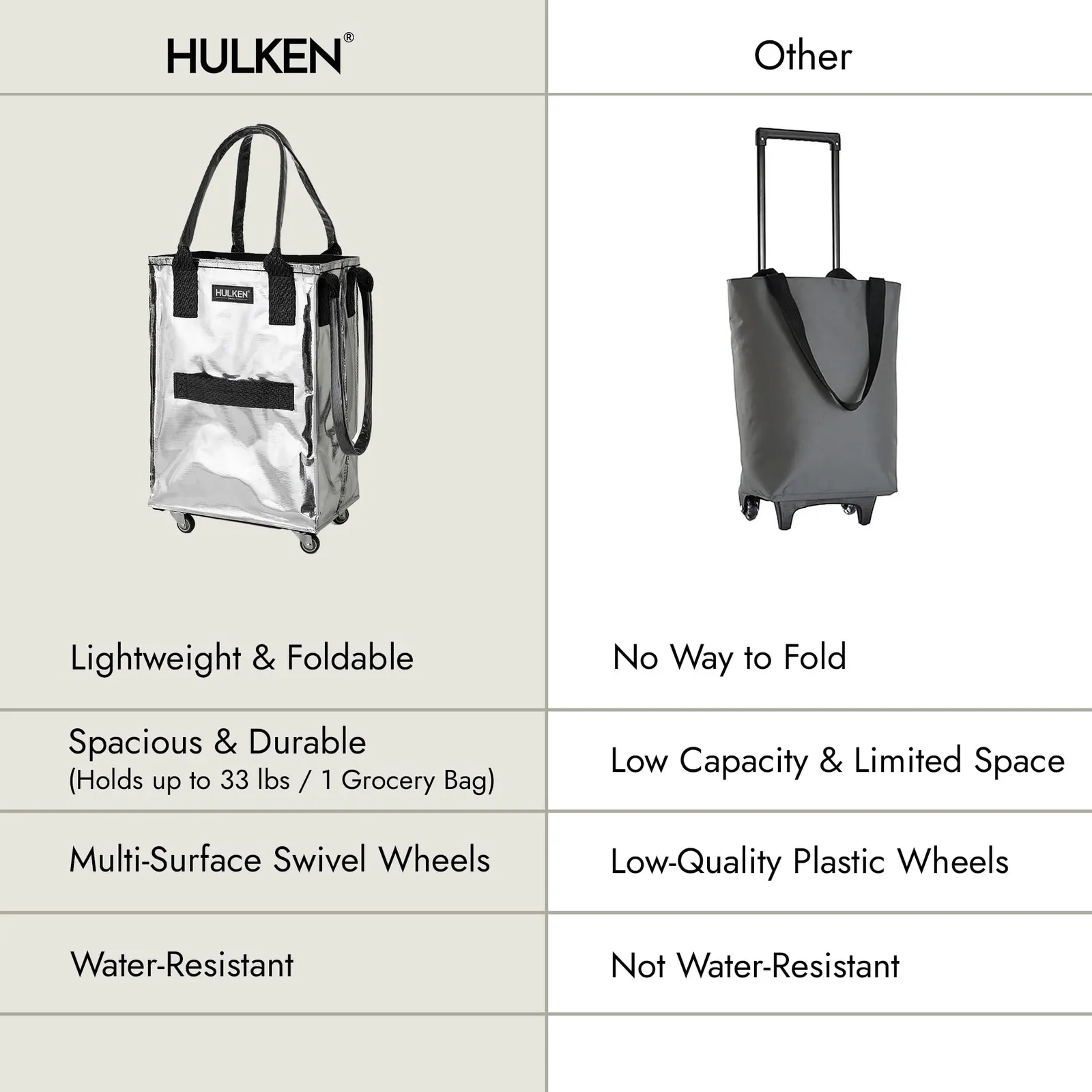 毎日のグラインドと同じくらい丈夫:Hulkenバッグはポータブルショッピングカート以上のものです。 高品質の素材と工業グレードの職人技が特徴で、アクティブなライフスタイルに追いつきます。