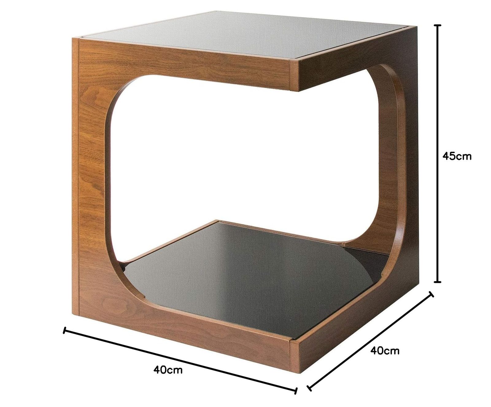 宮武製作所 サイドテーブル ARCA 幅40×奥行き40×高さ45cm ブラウン 2段ガラス天板 ST-402 BR