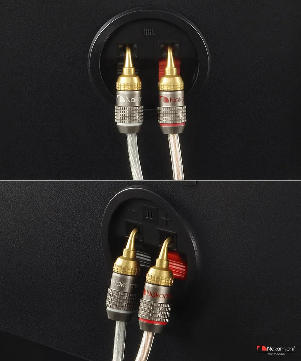 ? 金色は、光沢があり歪みを引き起こすニッケルの下地層がないため、くすんで見えます。そのため、スピーカーにはクリーンで純粋な音質が得られます。色分けされたスリーブにより、スピーカーケーブルの極性を識別するのに役立ち、スピーカーがソースから最も正確な音周波数と音波を生成することができます。