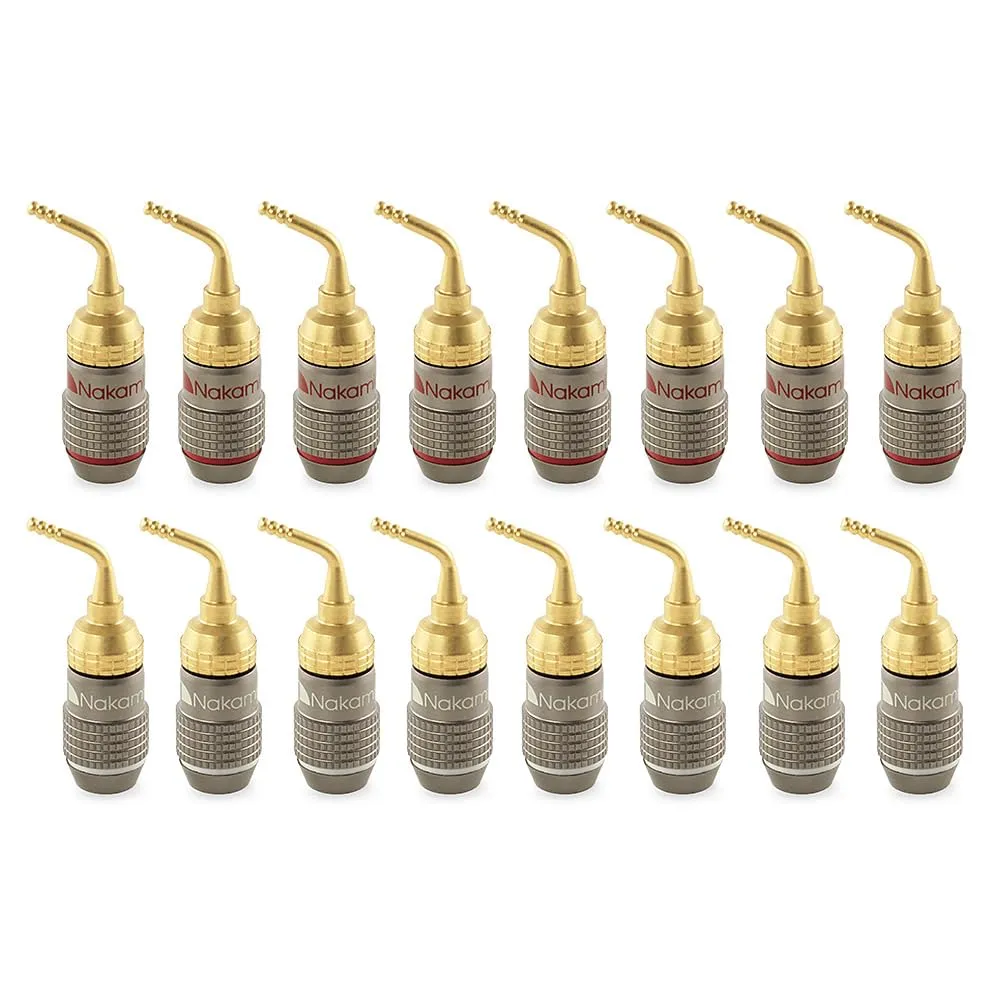Nakamichi FanLock Excel シリーズ 24k金メッキ 2mmピンプラグバナナ スプリングクリップコネクター用, 10 AWG - 18 AWG ゲージ サイズ 4mm スピーカー アンプ Hi-Fi ステレオ ホームシアター ラジオ オーディオ ワイヤ ケーブル AV レシーバー クイック コネクタ用、16個 (8ペア)