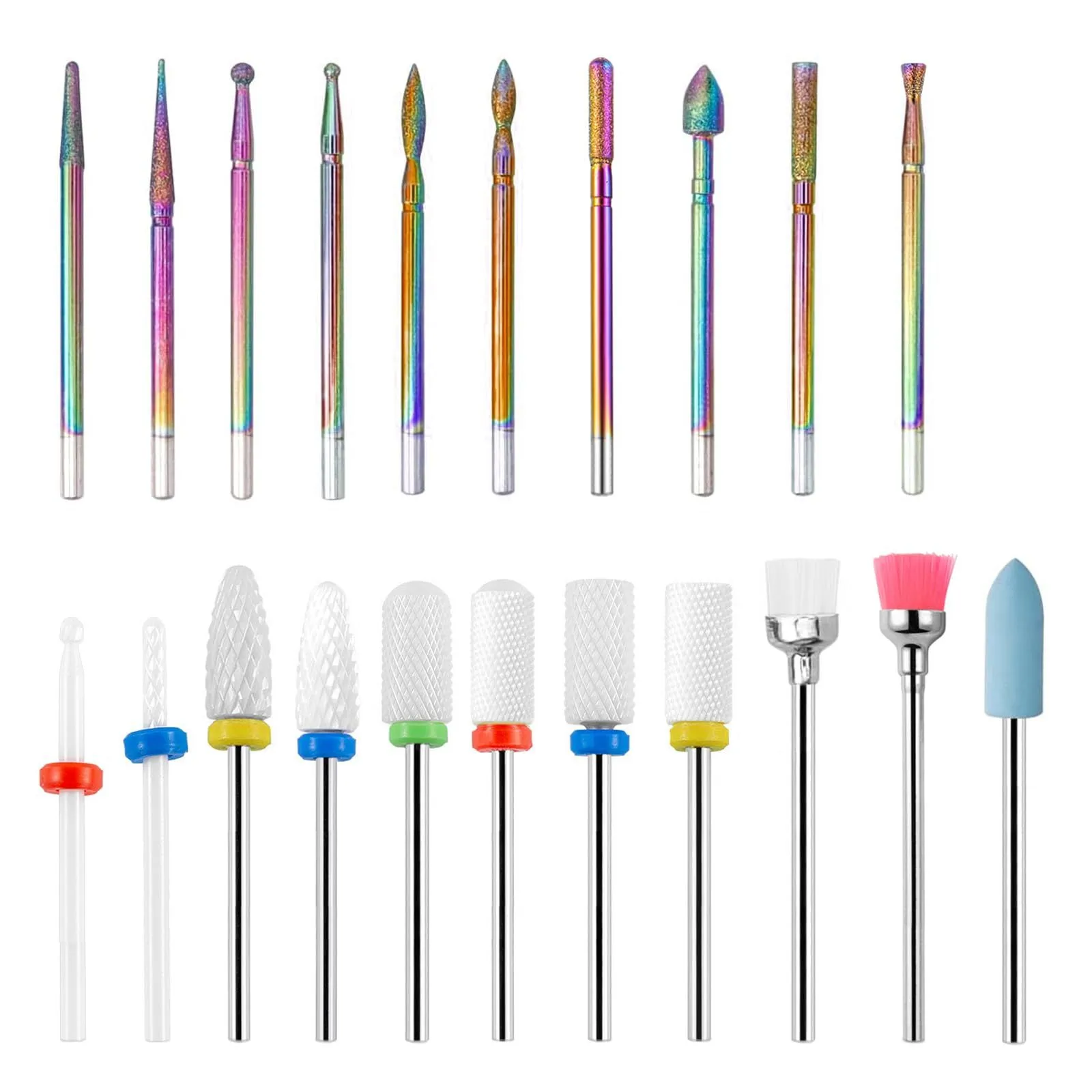 KIMLONTON ネイルビット セラミックネイル研削ビット 軸径2.35mm 21PCSセット 爪磨き ネイルケア用 甘皮処理 電動ネイルマシン用 ネイルドリル ビットセット
