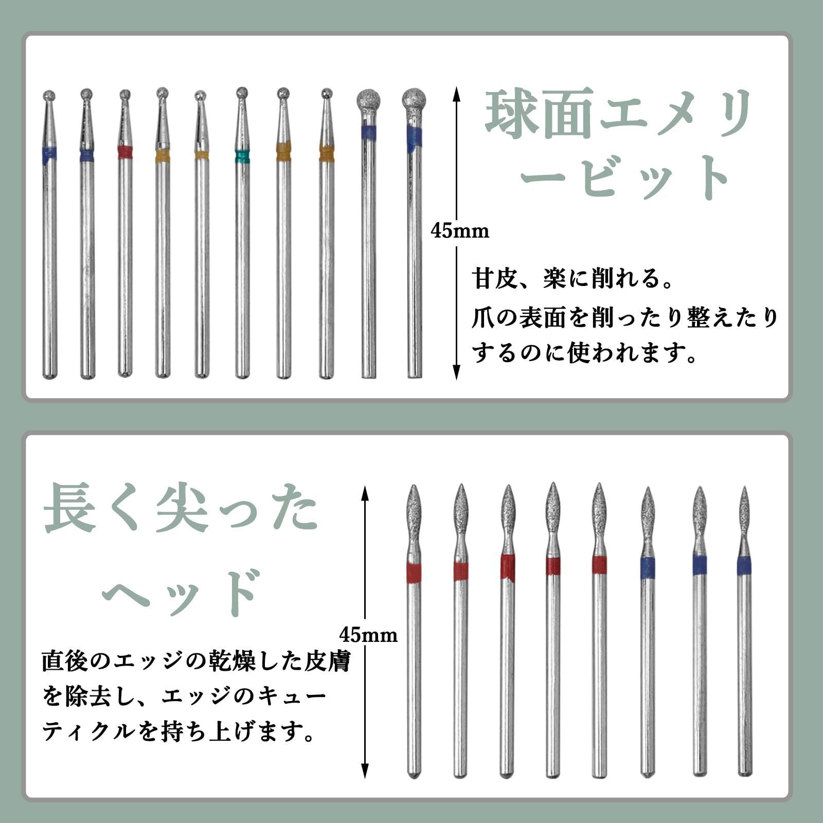 電動ネイルドリルビットは、ネイルアートやネイルケアに使用される工具の一部です。これは、ネイルドリル本体に取り付けられる小さな交換可能な部品であり、異なる形状や目的に合わせて選択できます。
