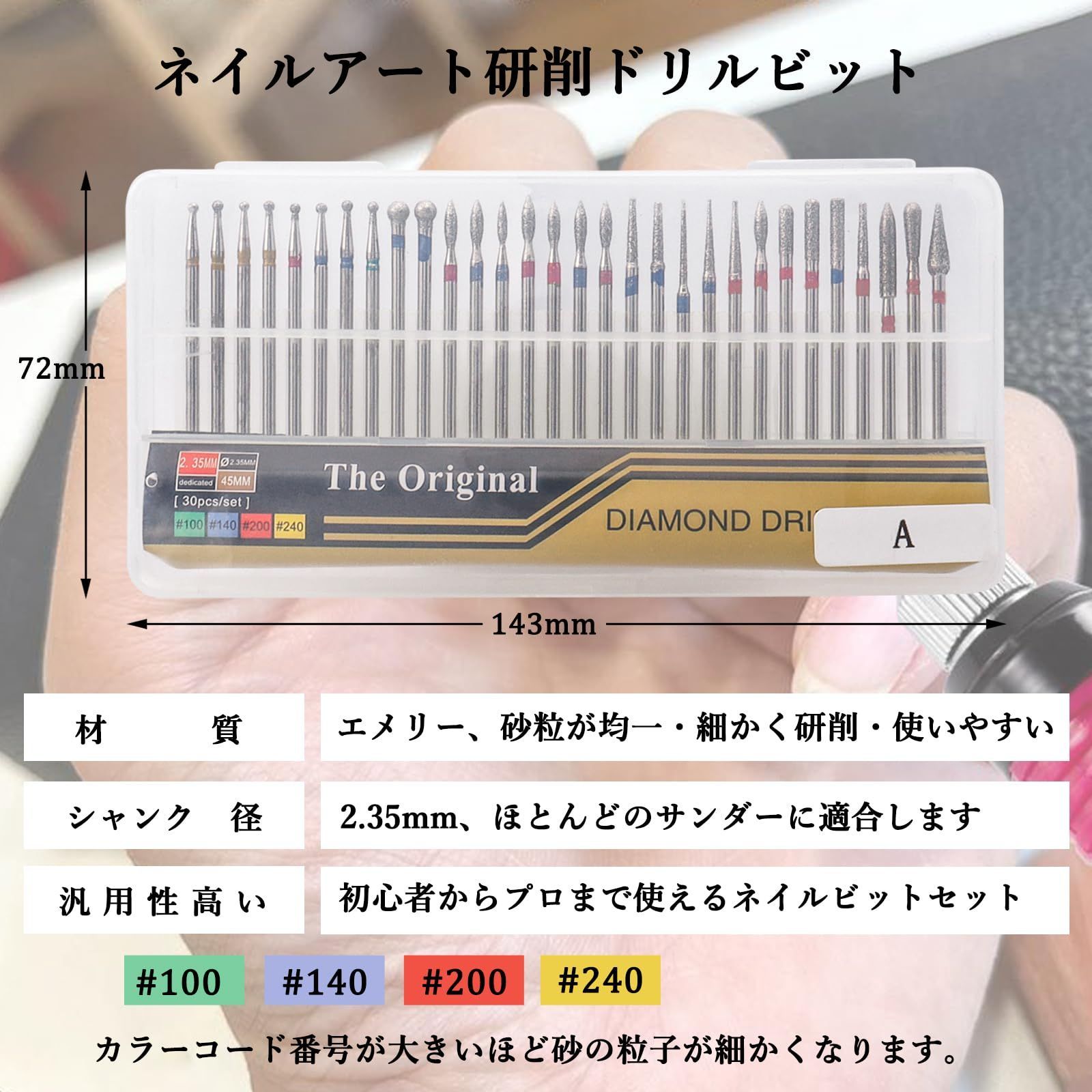 【新着商品】ダイヤモンドビット 研磨ビット 30本キューティクルクリーンネイルアートツール 甘皮処理 ネイルケア用 ネイルアート 爪磨き ドリルビット 研磨用ドリルビット 研削ネイルヘット ネイル 研削ビット ネイルマシン用 グラインド 2.35mm ネイルビ
