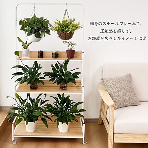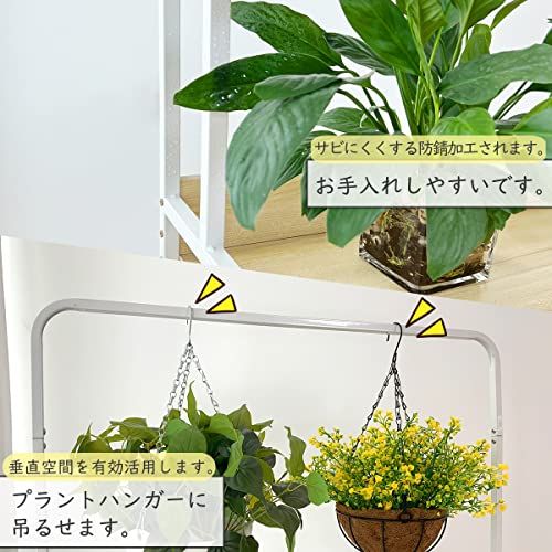 【癒しの空間を演出】庭だけでなく室内でもベランダでも使用しやすいガーデンラックです。3段構造でコンパクトな花置きラックで、お気に入りのお花を置けば、癒しの空間を演出できます。プラントハンガー設計で最大60 cmまでのプラントを吊るす可能、垂直空間をさらに活用できます。