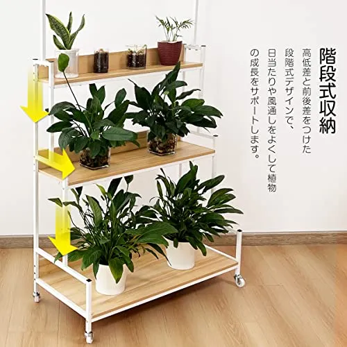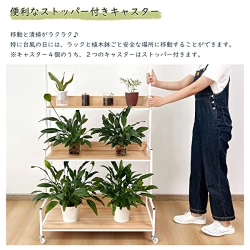【360回転できるキャスター付き】360回転できるキャスター付きなので、移動するのが便利です。台風の日でも、ラックと植木鉢ごと安全な場所に移動することができます。日当たりの向きを変えたり、掃除の際などにも楽に動かすことができます。