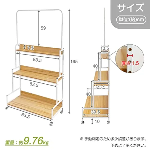 サイズ】約幅83.5奥行き38.5高さ165.5 cm 重量:約9.76 kg. 耐荷重(全体):約40 kg. 耐荷重(プラントハンガー吊るす所):約5 kg.