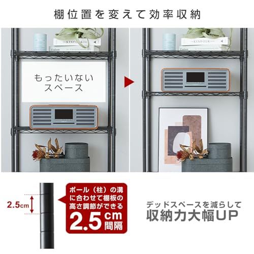 ドウシシャ ルミナス互換 5段 幅60 スリムスチールラック 棚 収納 黒 ブラック 全体耐荷重325kg 幅59.5cm×奥行29.5cm×高さ151.5cm M1560305BK 頑丈 ワイヤーシェルフ 奥行30 ポール径19mm パーツ対応 キッチン★m