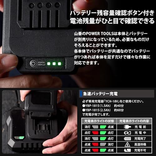 山善(YAMAZEN) 18V 共通バッテリーシリーズ用リチウムイオンバッテリー 2.5Ah YBP-1825 【18V共通バッテリーシリーズ】★m