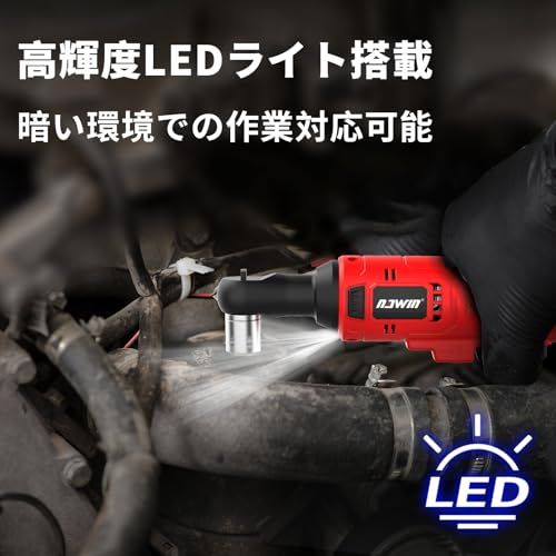 【正逆転切替・LEDライト】当社の充電式ラチェットレンチは、正逆転切替機能を搭載しており、ボルトの締め付けと緩めをワンタッチで簡単に切り替えることができます。さらに、LEDライトを内蔵しているため、作業中に自動的に点灯し、暗い場所でも安心して作業を進められます。
