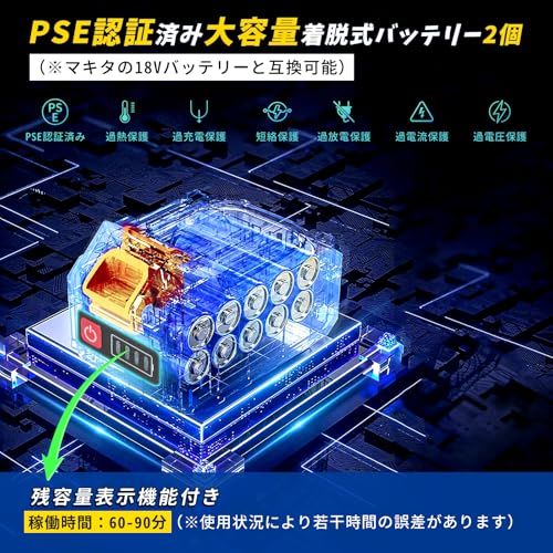 【安全ロックボタン・LEDライト搭載】作業中の安全性を最優先に考え、安全ロックボタンを搭載。ロックを解除しなければスイッチトリガーを引けない設計で、誤作動をしっかり防止します。スイッチから指を離すとすぐに停止するため、初心者でも