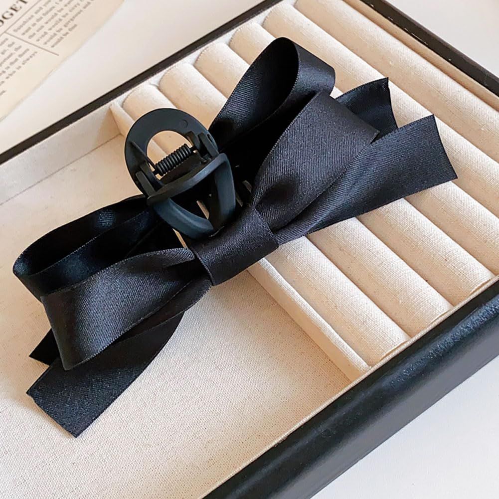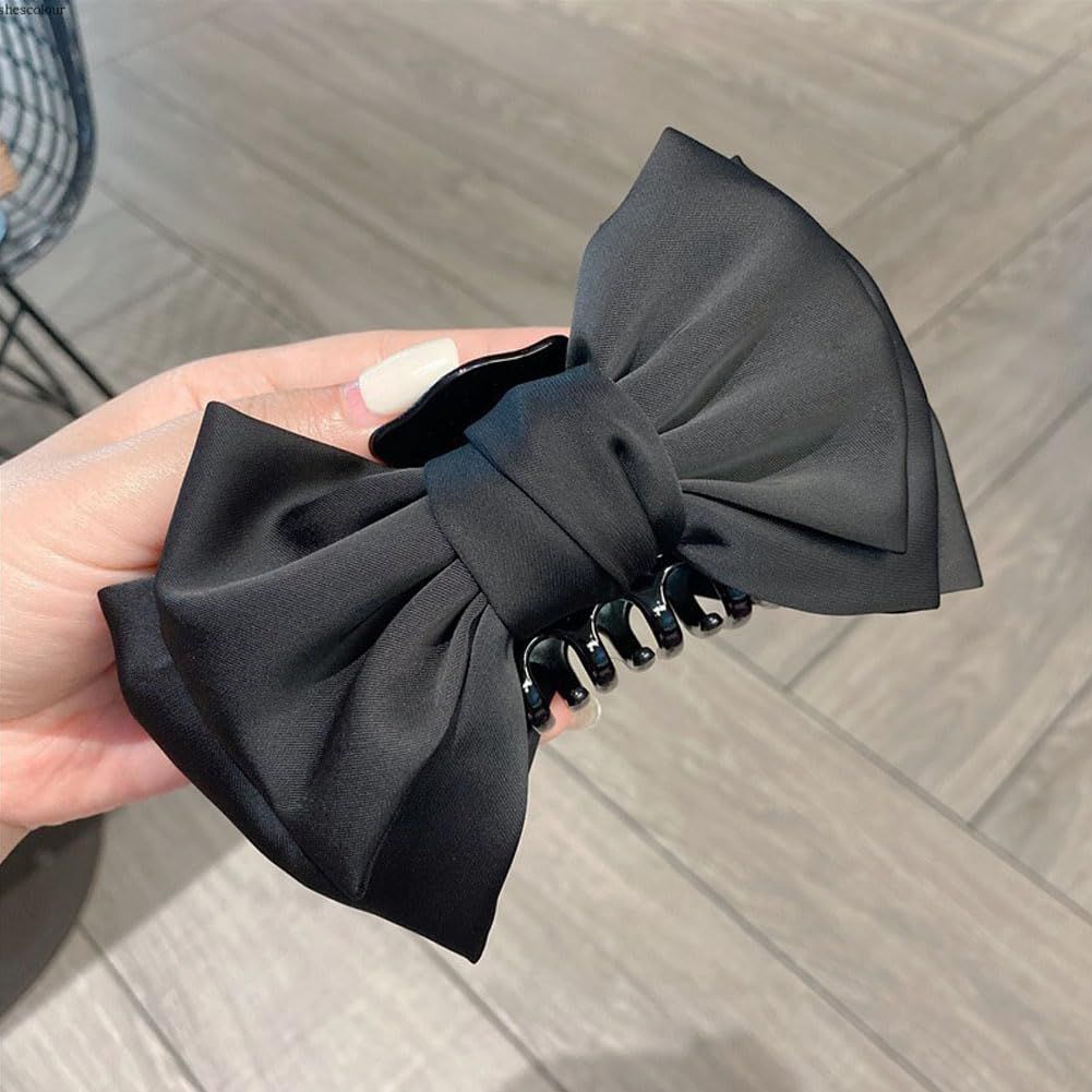 shefun バンスクリップ リボン 蝶結び 大きめ 毛量多い 黑 2個セット ヘアクリップ 大人 レディース ヘアクロー フランスクリップ しっかり 髪留め シンプル オフィス 強力 大 ヘア クリップ 髪飾りJP317