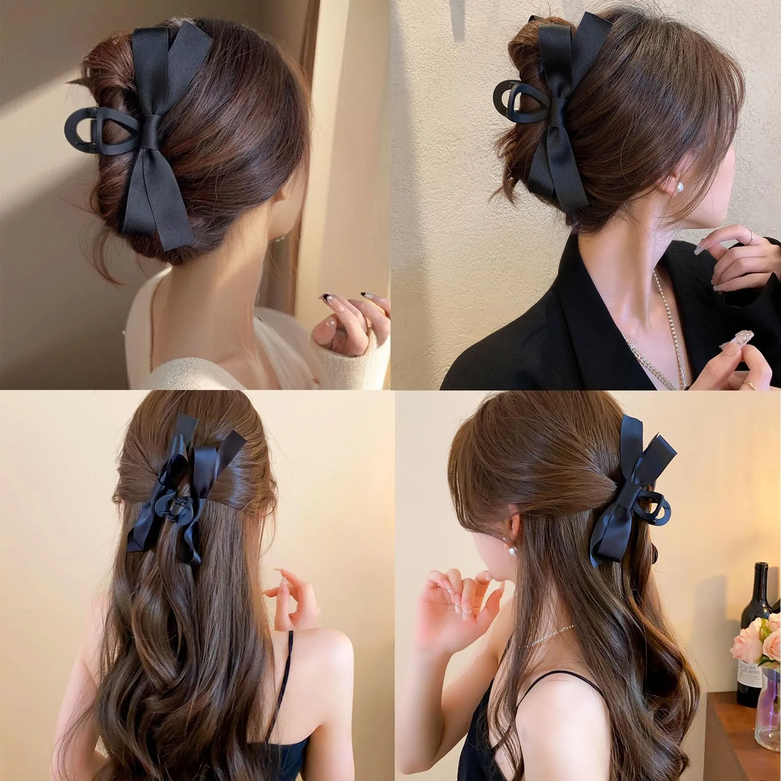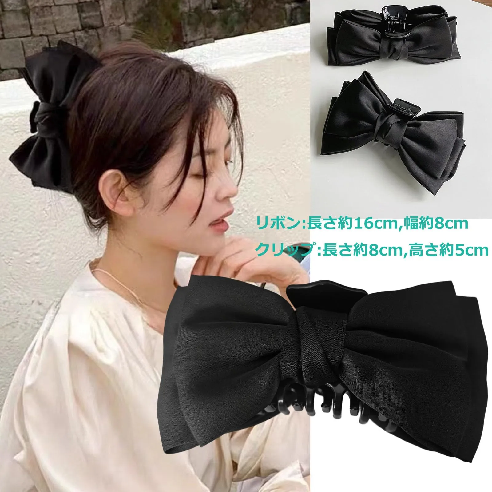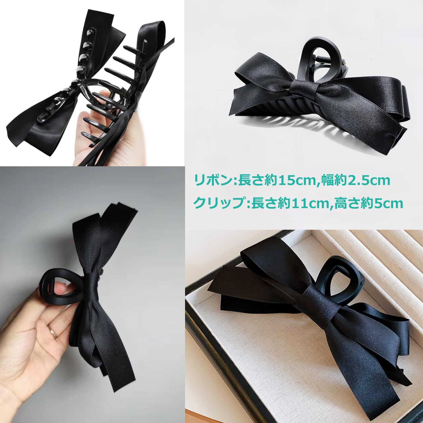 大人 レディース ヘアクリップ ヘアクロー 2個セット フランスクリップ 黑 しっかり 髪留め 毛量多い シンプル 大きめ オフィス 蝶結び 強力 大 リボン ヘア バンスクリップ クリップ shefun 髪飾りJP317