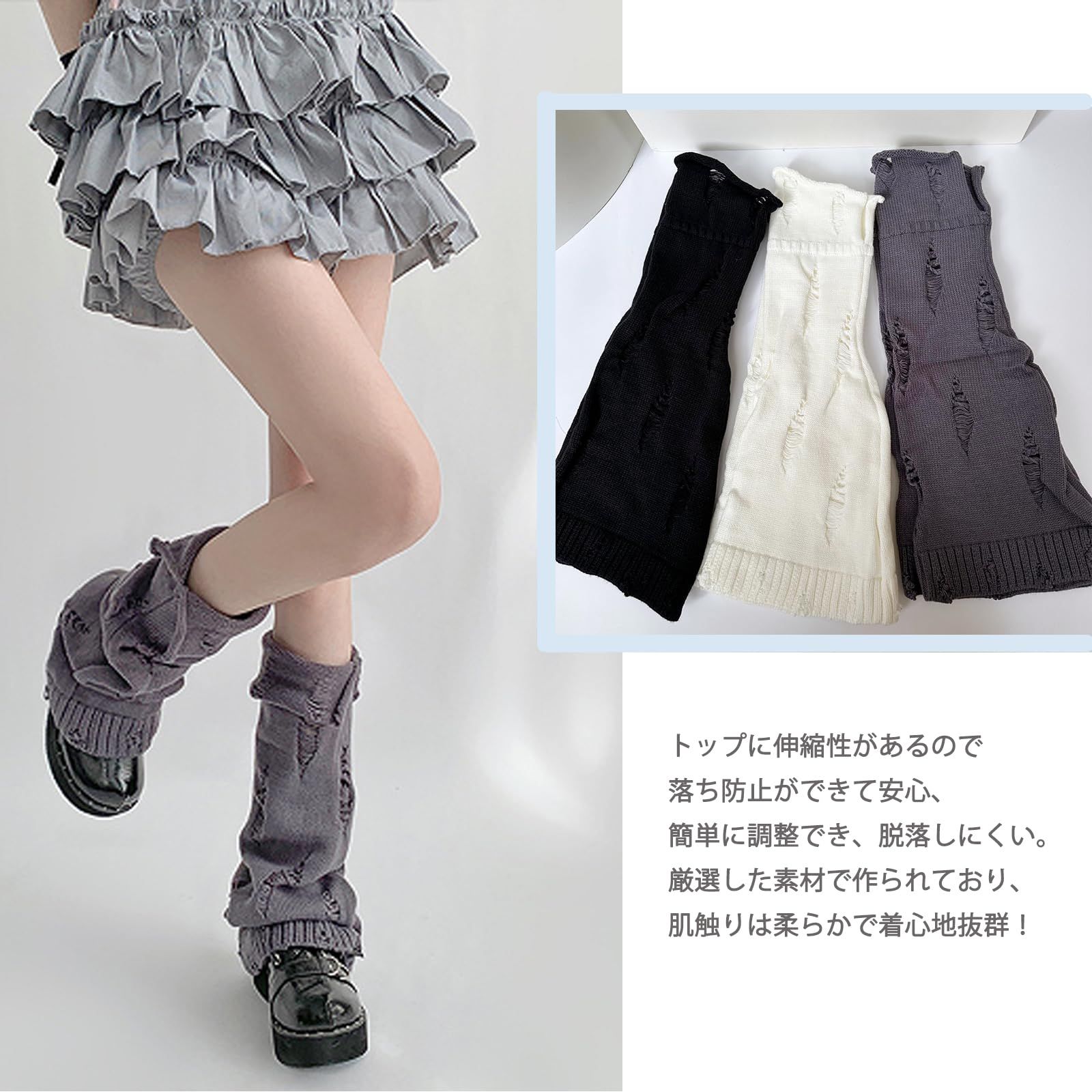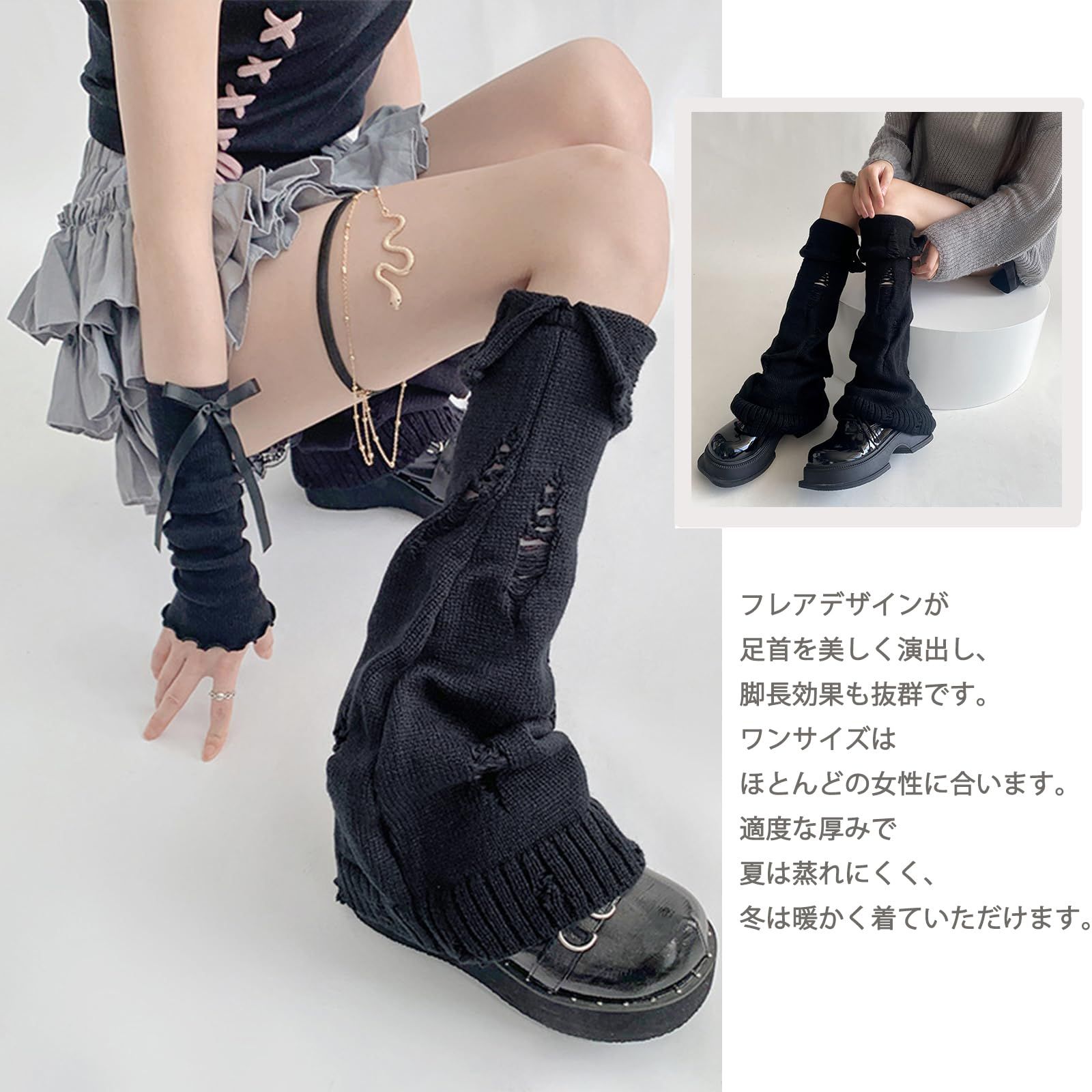[Laisve] レッグウォーマー レディース 足首ウォーマー サブカル 柔らかい 乞丐風 ニット 防寒 靴下 レッグカバー フレア フットカバー ルーズソックス 暖かい 冷え対策 かわいい Y2K