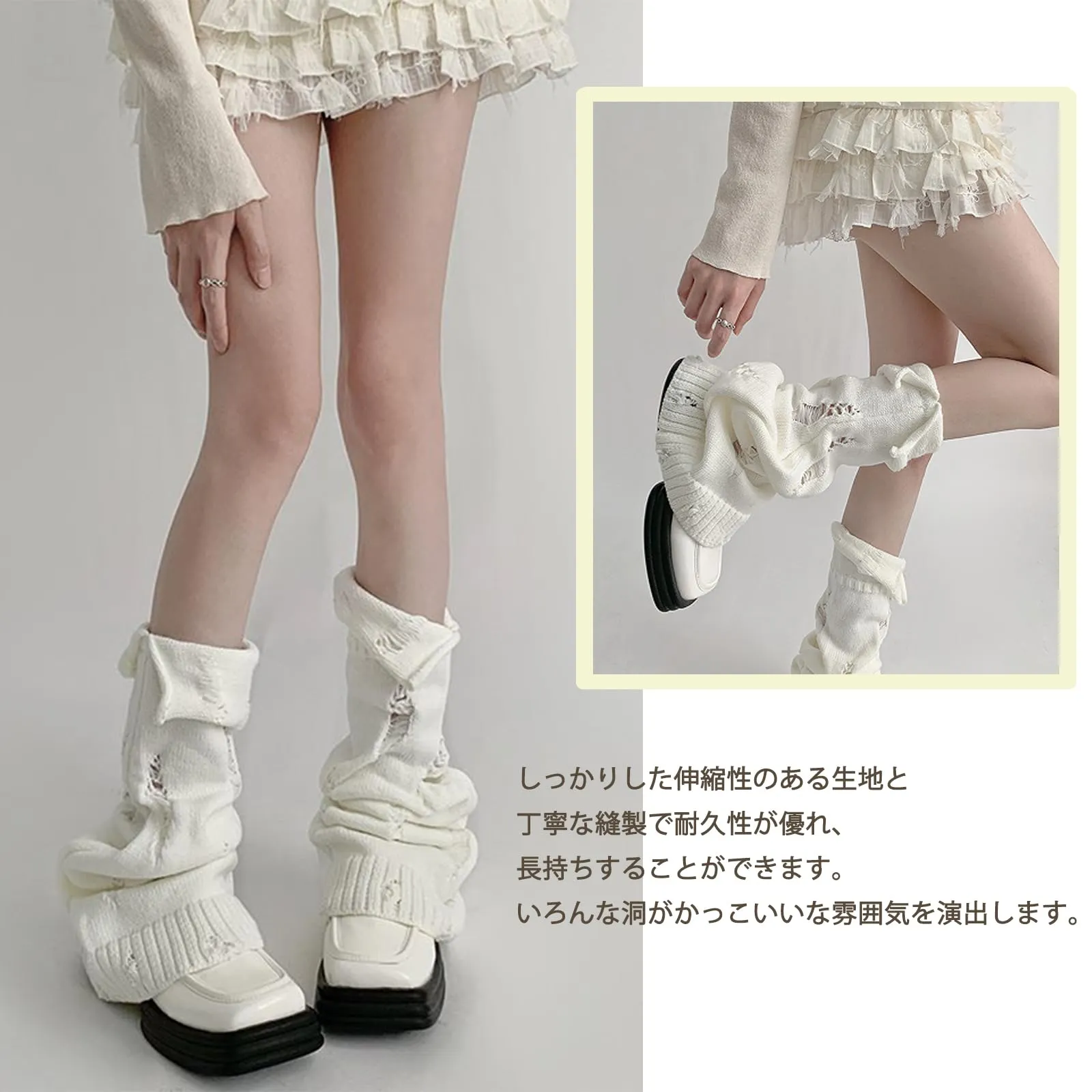 【乞丐風】いろんな洞がかっこいいな雰囲気を演出します。フレアデザインが足首を美しく演出し、脚長効果も抜群です。ワンサイズはほとんどの女性に合います。適度な厚みで夏は蒸れにくく、冬は暖かく着ていただけます。