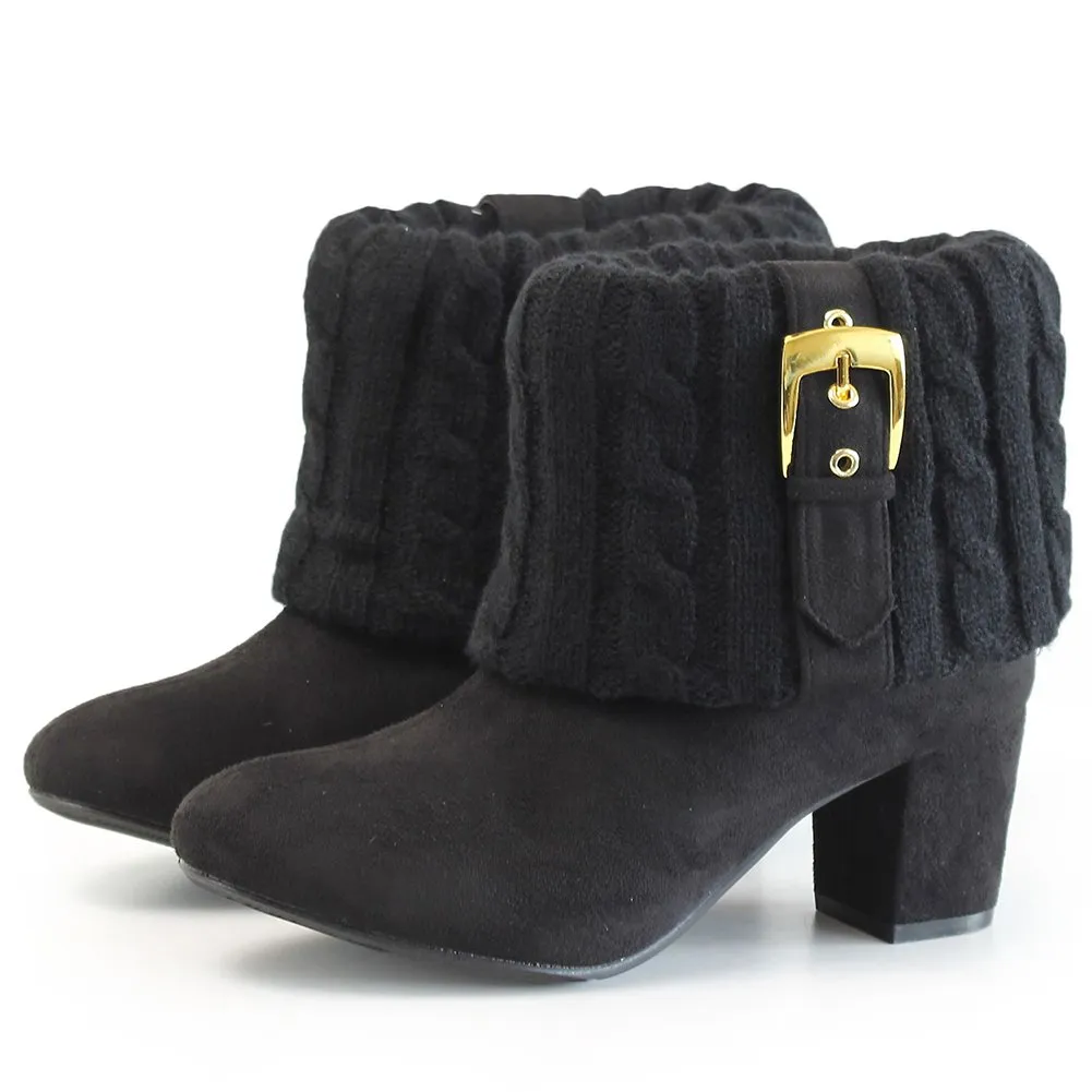 [Room9] (ルームナイン) ニットデザイン ショートブーツ レディース ローヒール ブーティー ブーティ 太ヒール 歩きやすい(kk-1221)