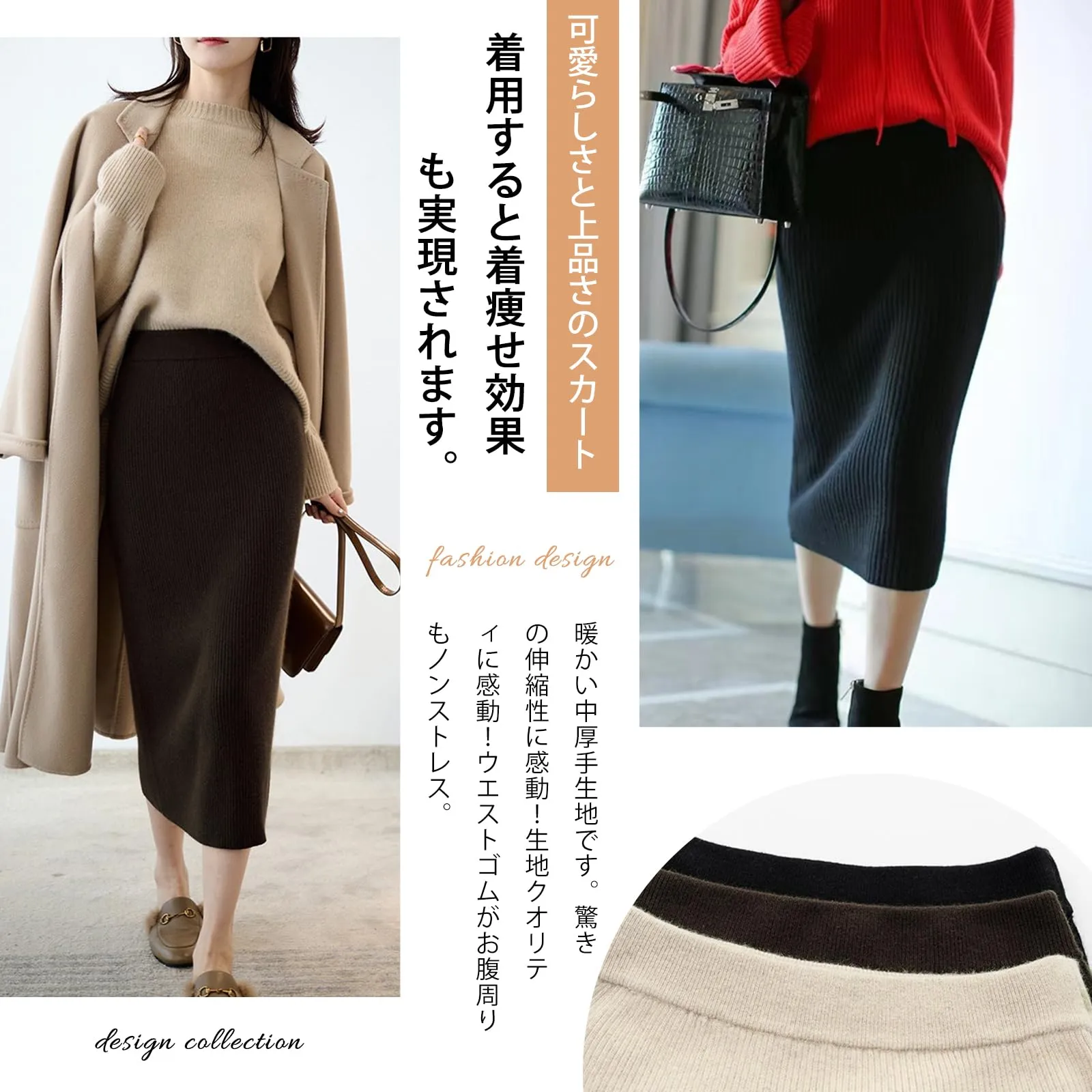 レディース 秋冬 ニット スカート タイトスカート プリーツ ペンシル リブニット ボトムス ウエストゴム きれいめ ミモレ丈 暖かい [7-livehouse] ストレッチ 美脚 無地 可愛い 防寒 オフィス OL 通勤 秋冬