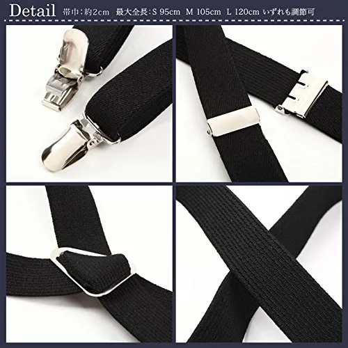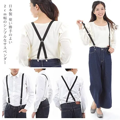 [Peace工房] サスペンダー X型 無地 2cm幅 S,M,Lサイズ 日本製 男女兼用 メンズ レディース クリップ式 使いやすい ビジネス カジュアル おしゃれ