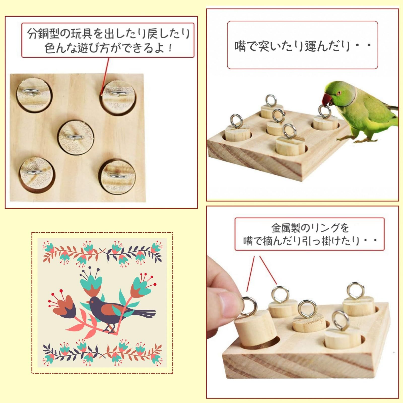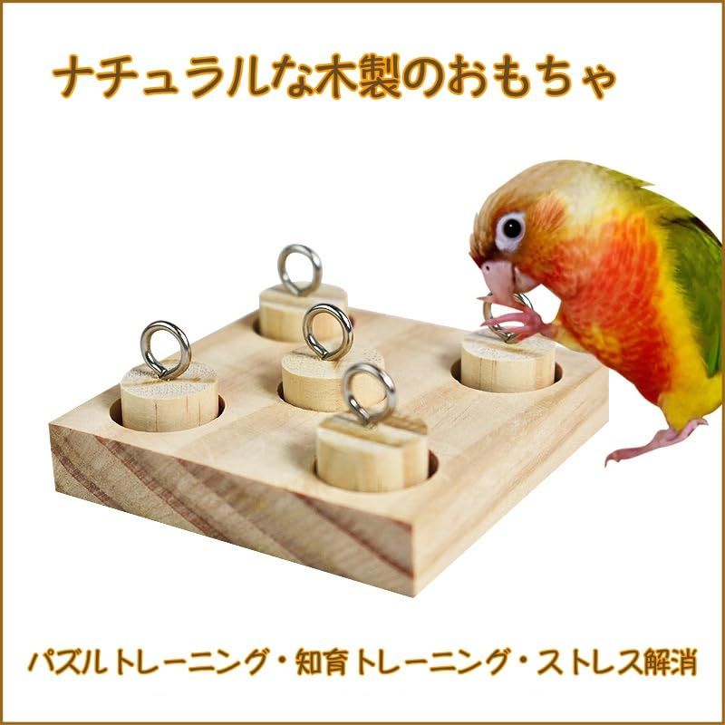 木製のバードトイはインコなど小鳥の知育を促進するために設計されています。こちらの玩具は、インコがパズルを当て嵌めたりすることで知性を刺激します。