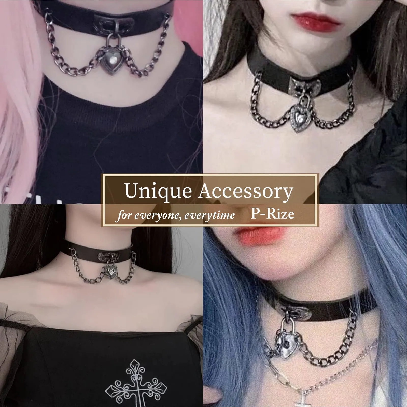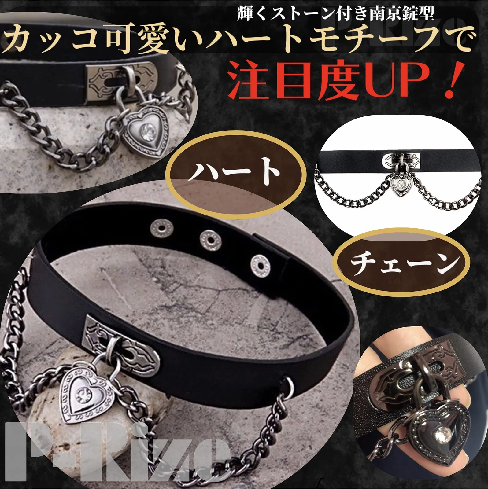 & チェーン レザー チョーカー レディース ハート メンズ 黒 パンク 地雷系 病み系 V系 [P-Rize] ヴィジュアル系 ゴシック 原宿系 コスプレ 衣装