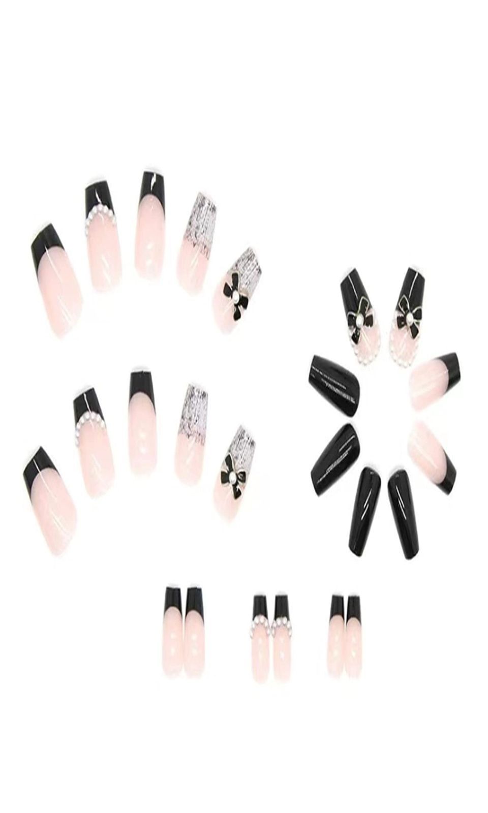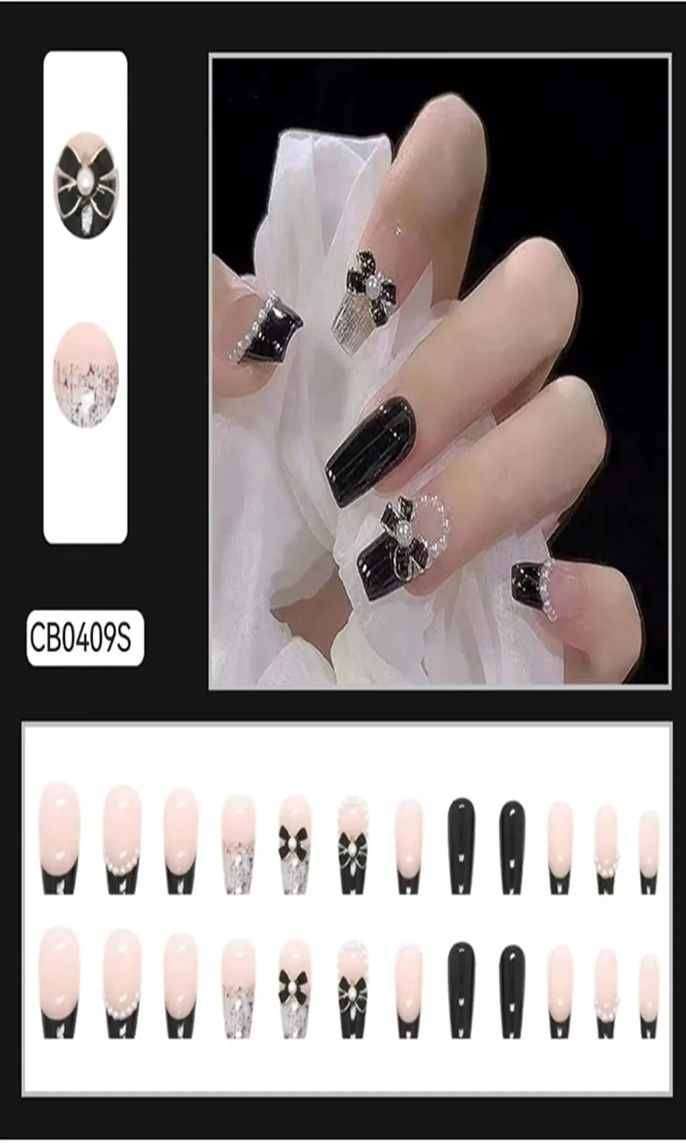 CLOGRATIA ネイルチップ 地雷系 黒 韓国 つけ爪 量産型 リボン 漆黒 3D サブカル ヲタ活 (黒 リボン)