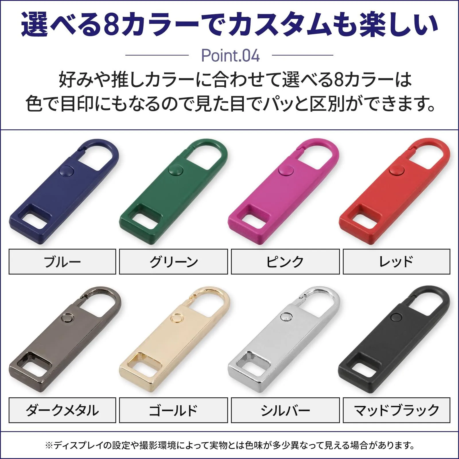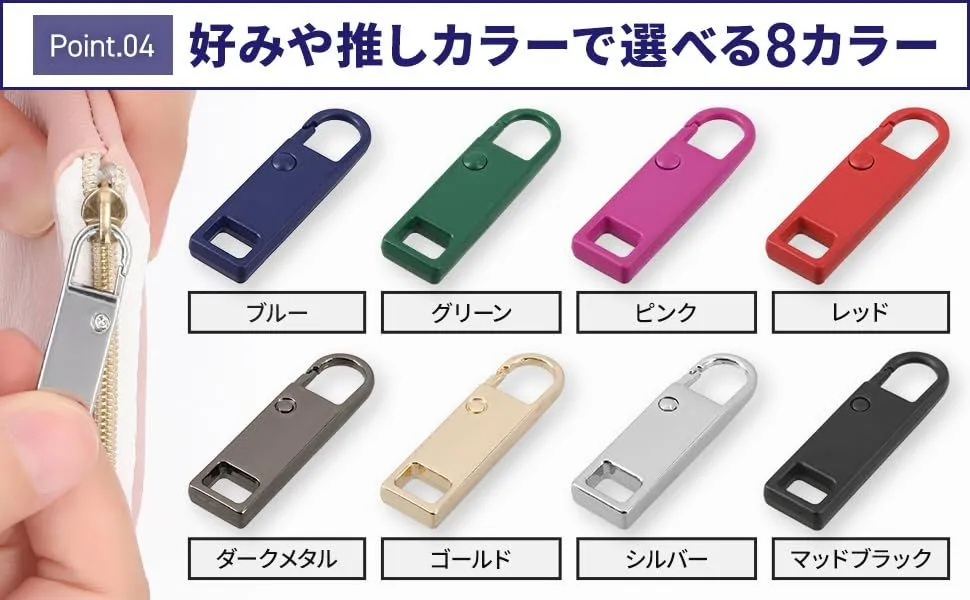 ダクション ファスナー 引き手 ジッパータブ チャック チャーム 修理 zipper ジッパープル スライダー 取って 引手 パーツ 持ち手 (カラフル(各種1個、計8個入り))