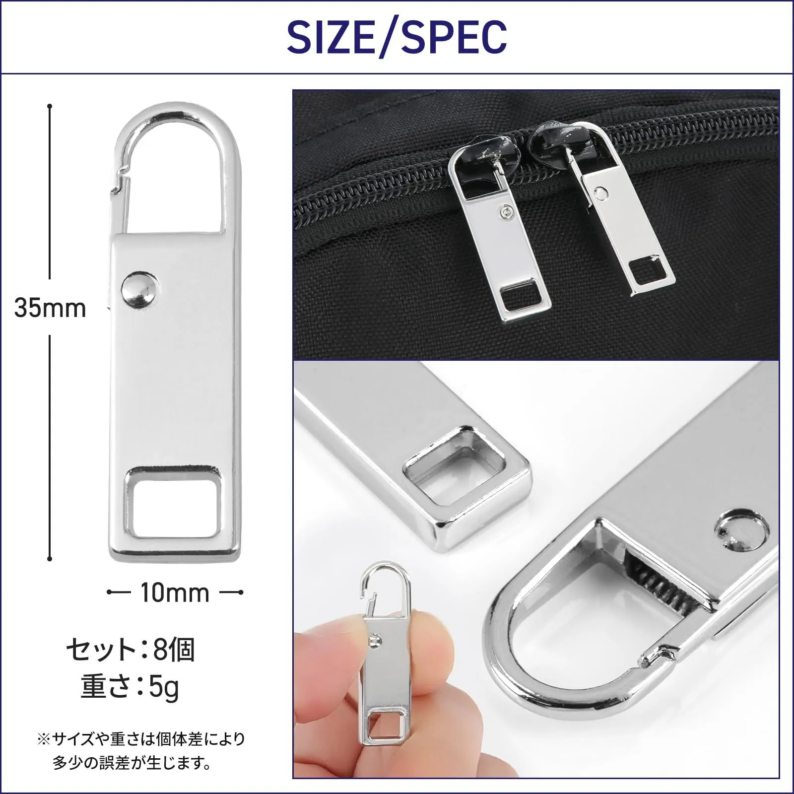 【使いやすいサイズ感】 サイズ:約35mm × 10mm/重さ:約5g 8個入りでストックにも安心。ジップ袋入りで保管も便利。 ※ストラップなどは付属しません。