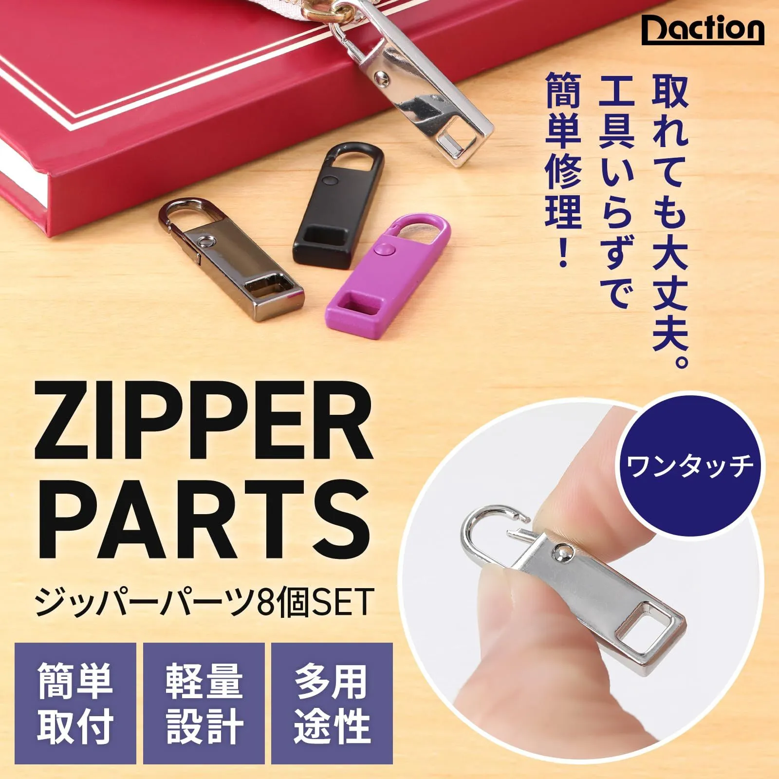 【取れても大丈夫。工具いらずで簡単修理!】 便利小物ブランドDaction(ダクション)から、ファスナーの引き手トラブルを即解決できるジッパーパーツが登場。