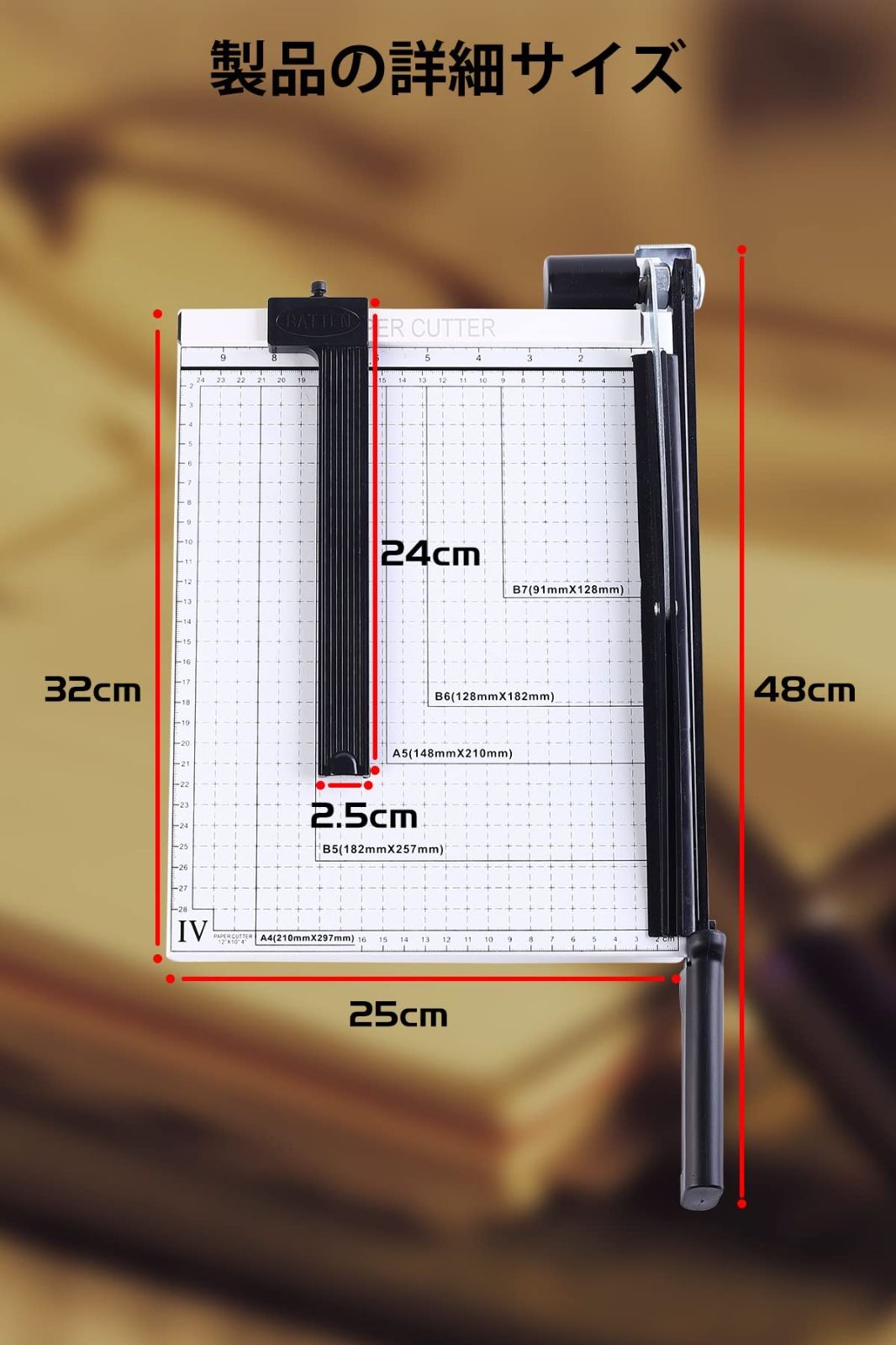 【操作が簡単 オフィスの必需品】裁断機にはプレッシャーバーとペーパーポジショナーが装備されており、カット中に紙が動くのを防ぎ、カットムラを防ぎます.ポジショナーは簡単に分解できるので、長い紙なども簡単に切断できます.紙のカットに便利な1cm単位の目盛りも付いているので、正確にカットできます.大きさがひと目でわかります. B7/B6/A5/B5/A4 用紙サイズをより正確にカットします. 誰でも簡単に切れます.