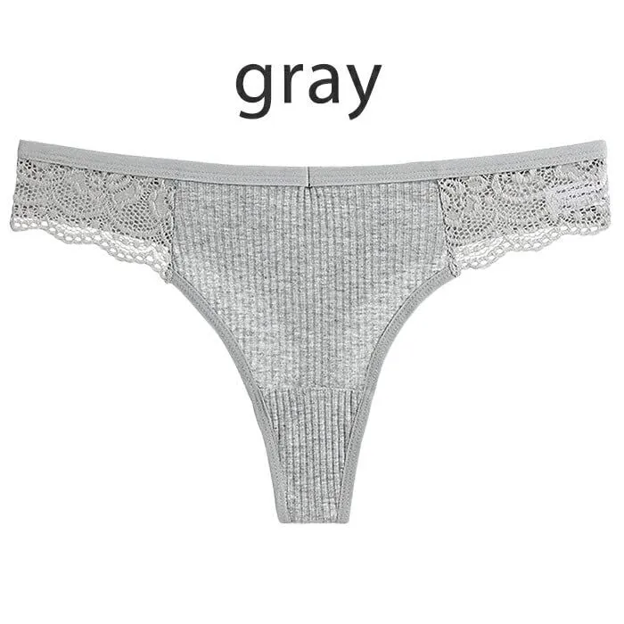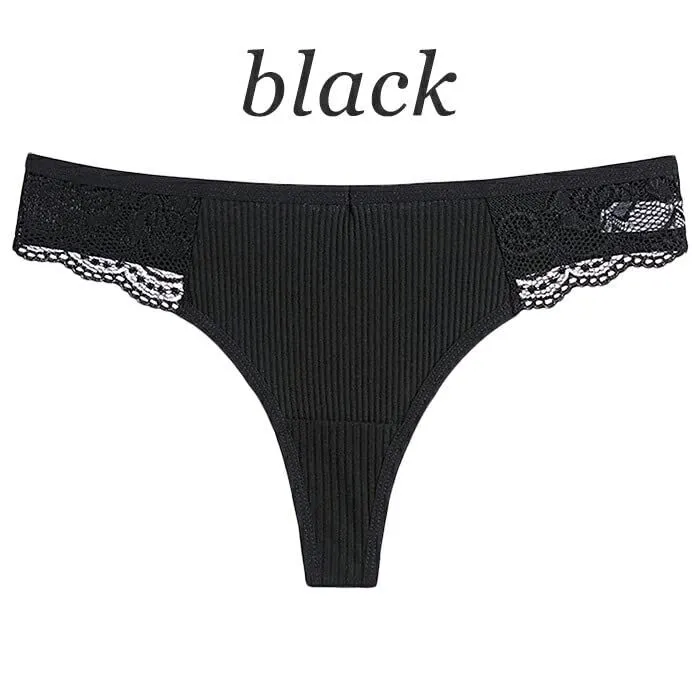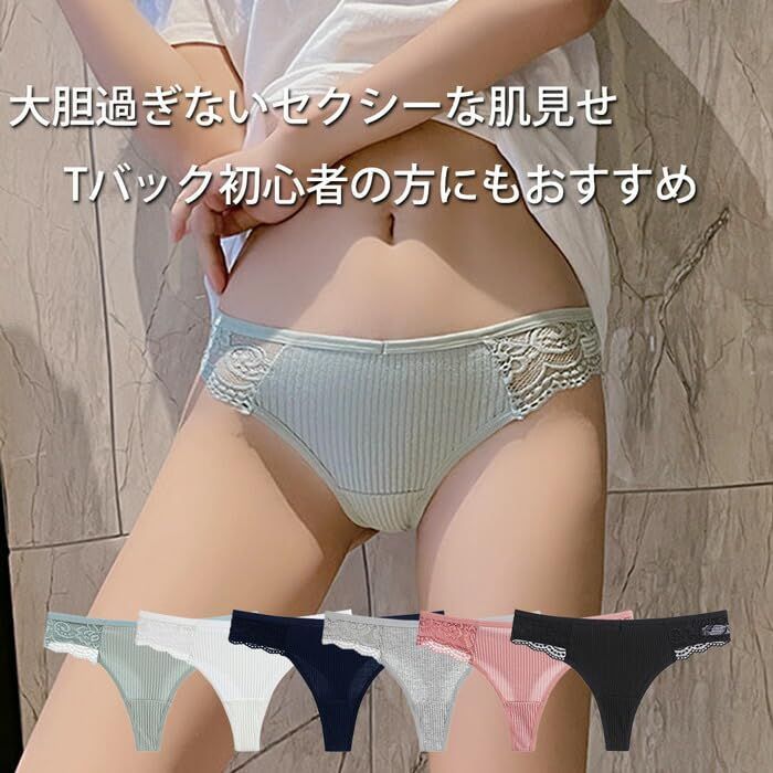 [Karly Shop] Tバック レディース 綿95% 柔らか コットン リブ編み ストレッチ シンプル フィット セクシー かわいい レース 9283