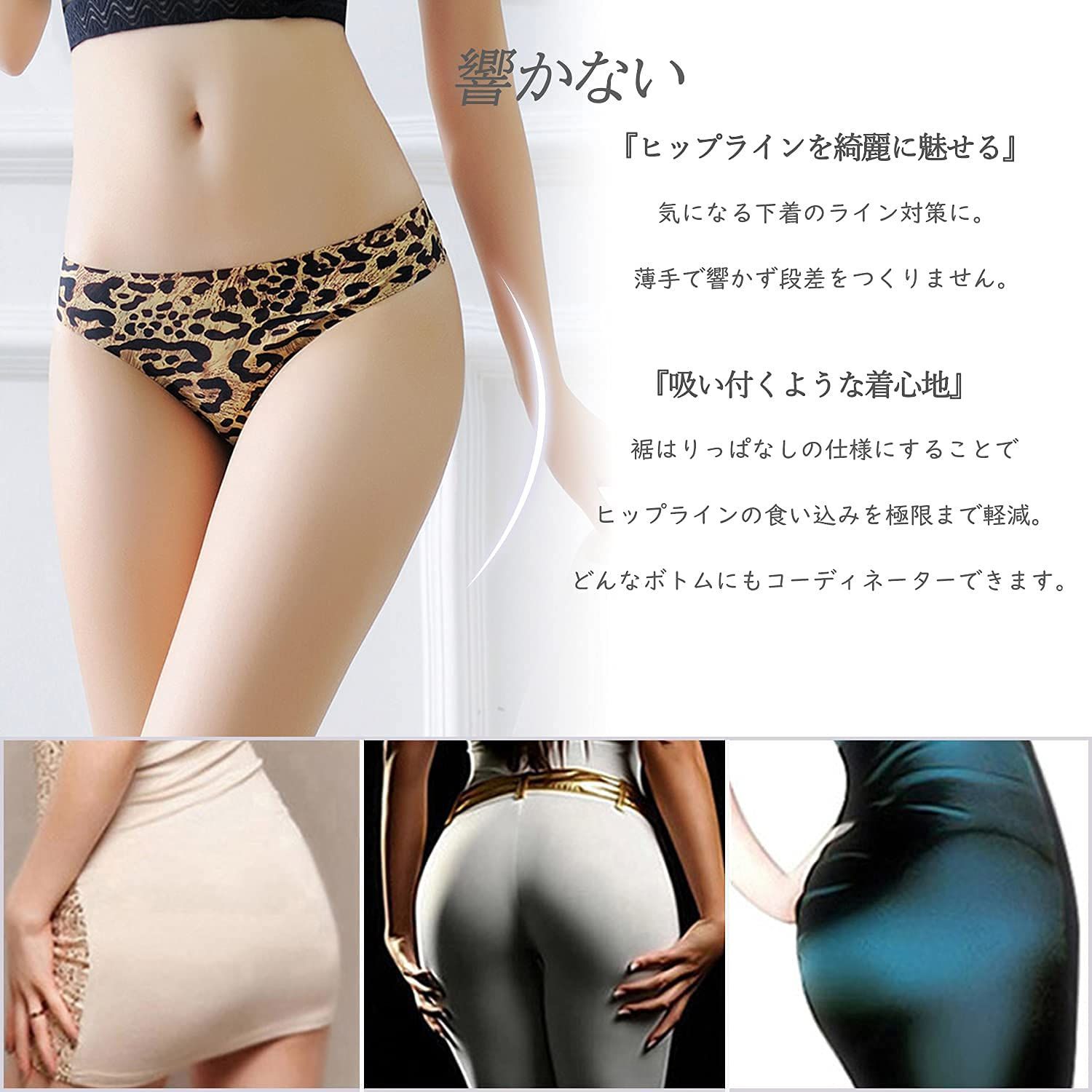 パンティ 無縫製 響かない Tショーツ 締め付けない 美しいヒップライン セクシー 豹柄 レディース ロイズ柄 無地 tバック 美尻 [Beirou] 3枚組