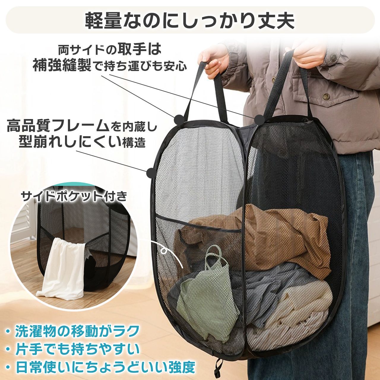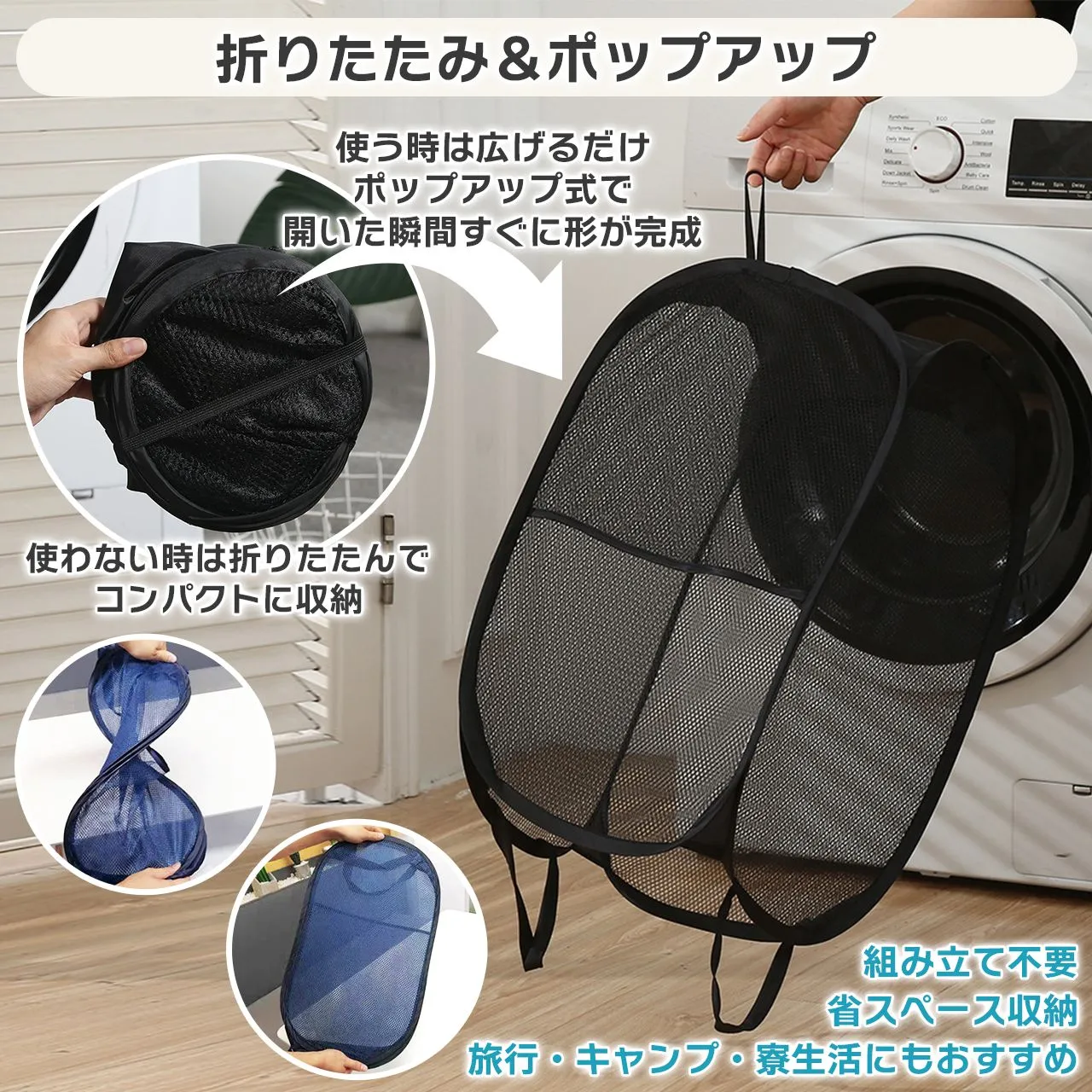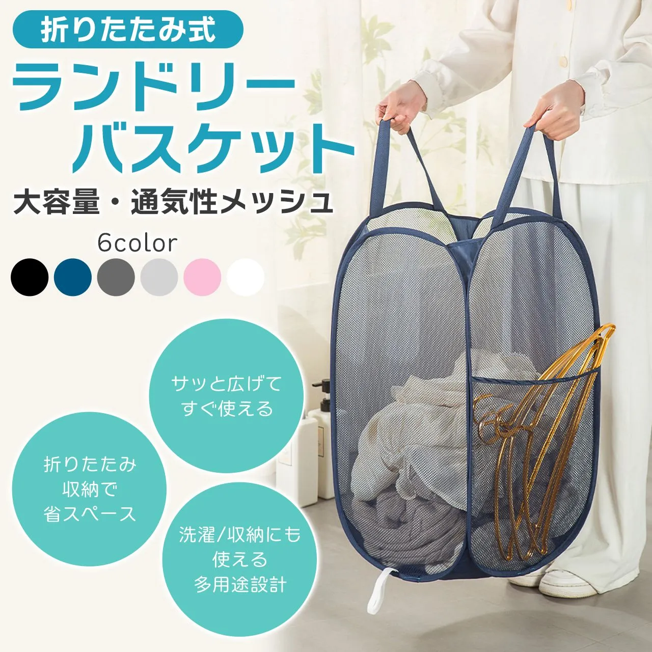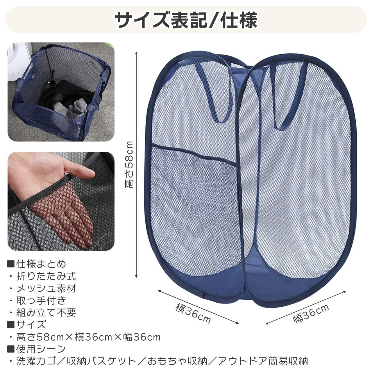ランドリーバスケット 折りたたみ 洗濯カゴ 洗濯かご メッシュ スリム 大容量 小さめ おしゃれ 大きい コンパクト