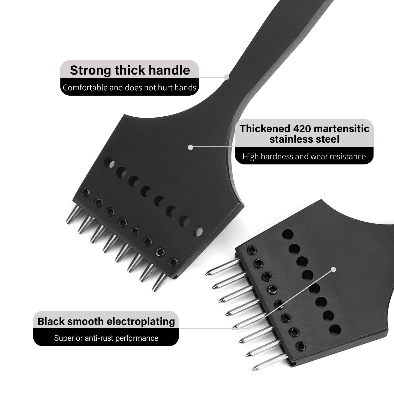 【高品質素材】4Cr13ステンレス鋼製、表面は黒色平滑メッキ、耐酸性、耐腐食性、高硬度、耐摩耗性に優れ、集中的なスタンピングや長期的な皮革加工技術に適しています。
