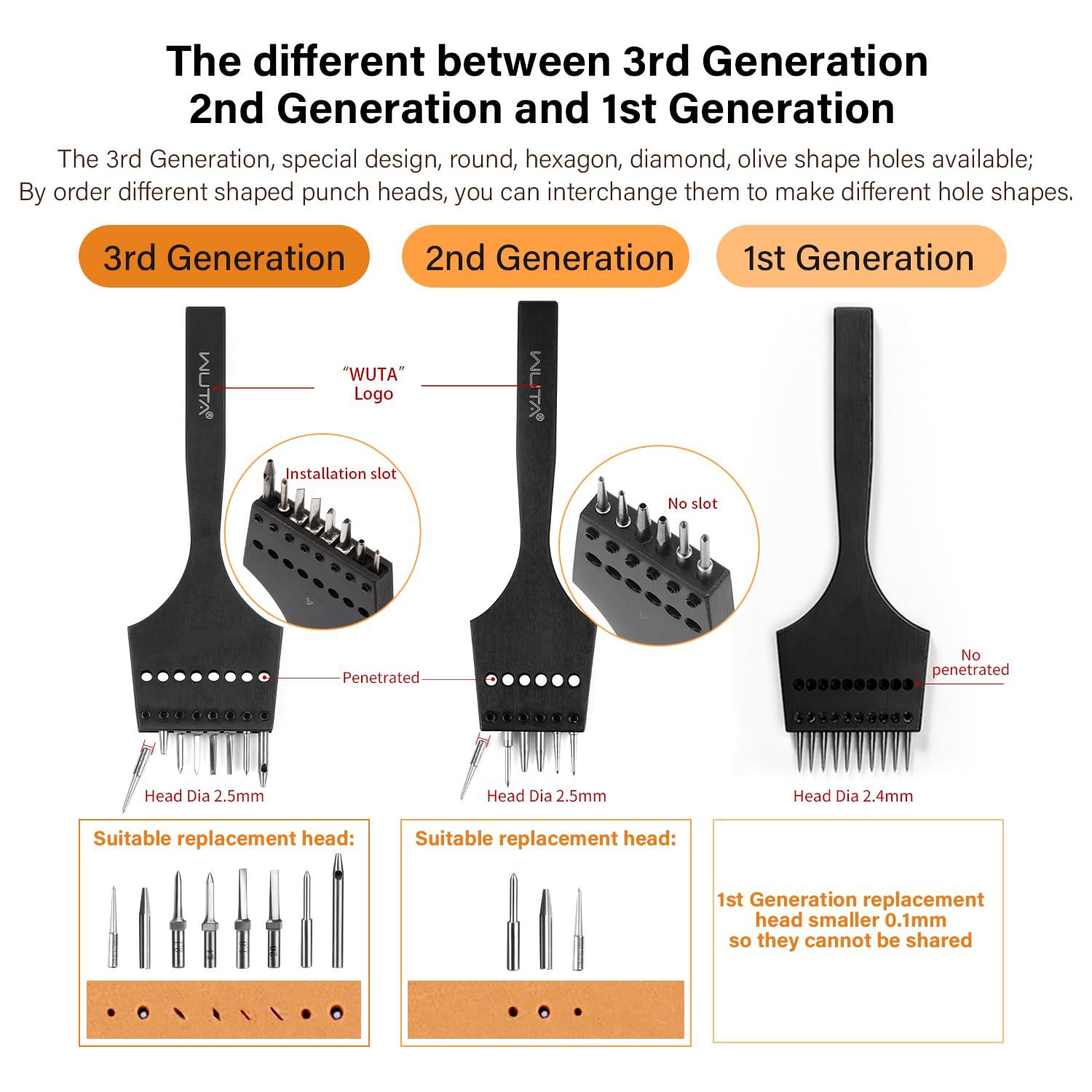 新品 WUTA 丸目打ち 第3世代菱目打ち レザークラフト 工具 取り外し可能 パンチアクセサリ DIY用 革細工 セット(4mm- 2+4+8)