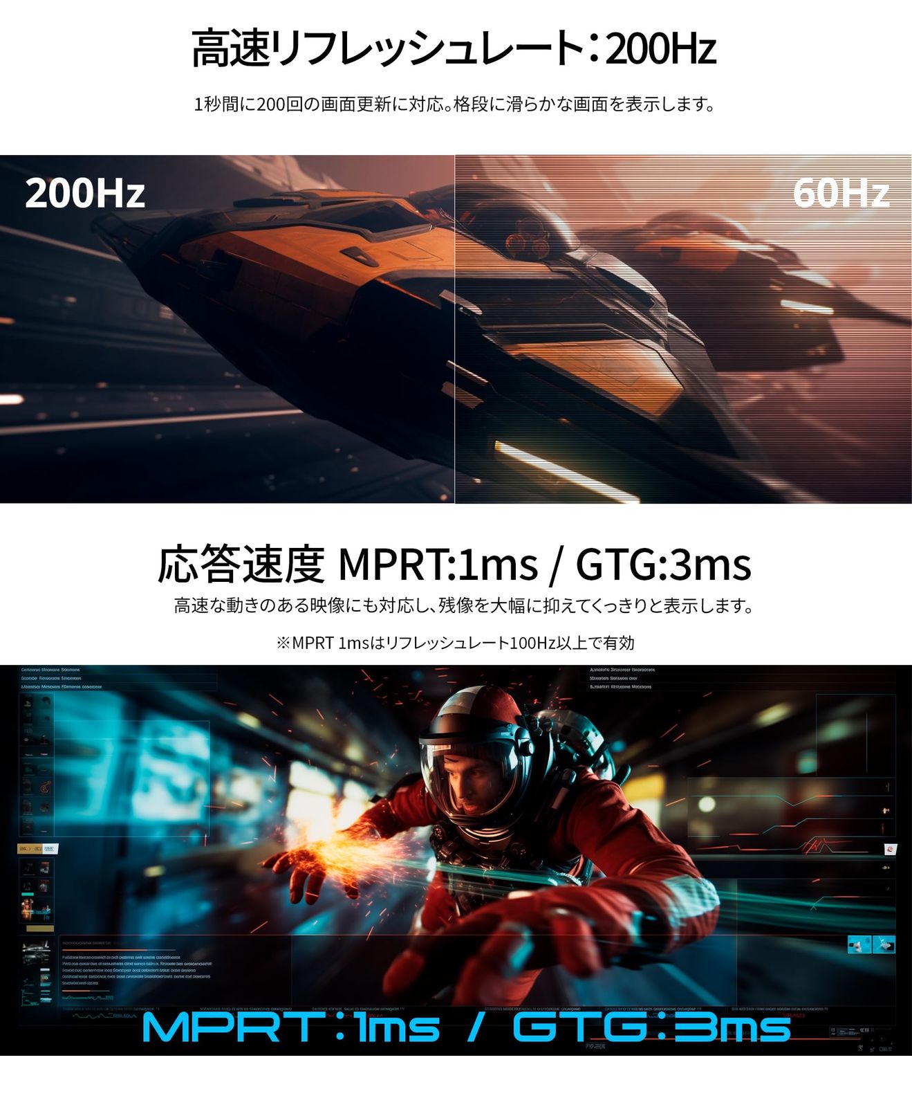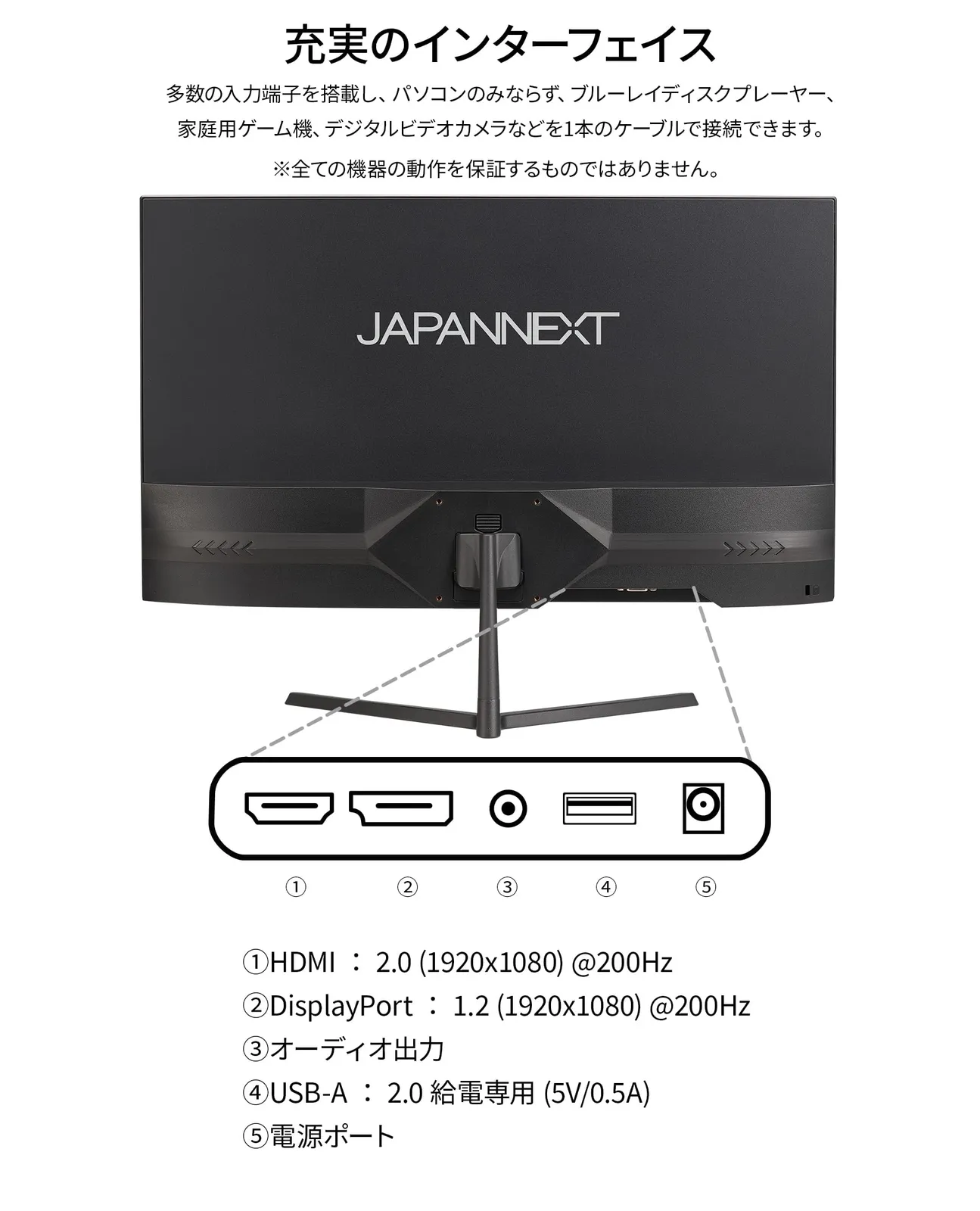 JAPANNEXT 24.5インチ IPSパネル搭載 200Hz/1ms(MPRT)対応 フルHD(1920x1080)解像度 ゲーミングモニター JN-IPS245G200F HDMI DP sRGB:99% HDR PS5 フルHD:120Hz接続