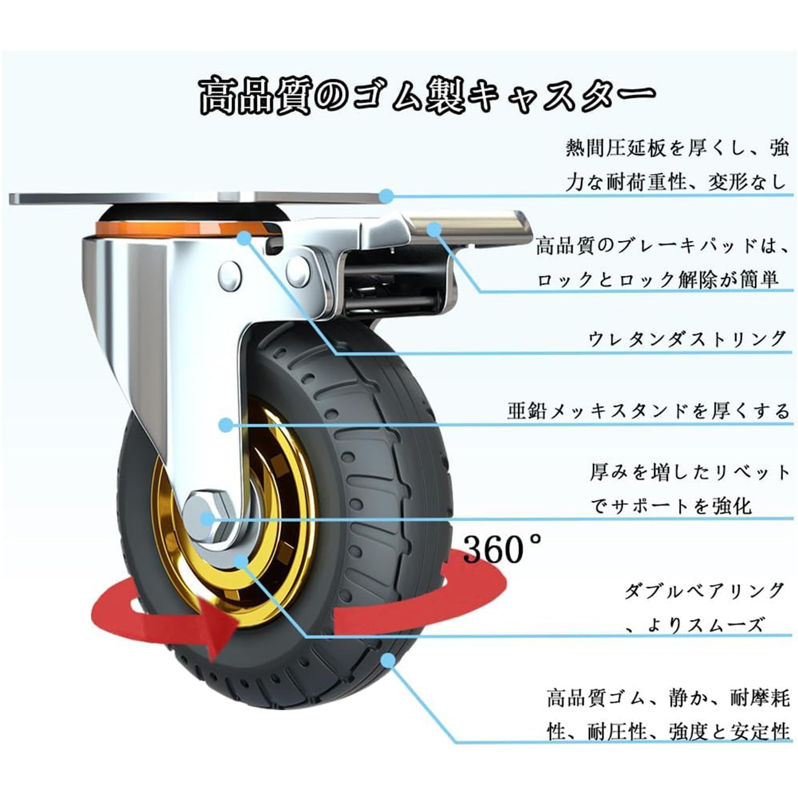[ブレーキ付き6インチキャスター]キャスターは高品質の亜鉛メッキ鋼フレーム+耐摩耗ゴムで作られて、衝撃や振動を吸収し、静かに作業することができます。耐荷重性、耐摩耗性、防錆性があり、360度自由に移動することができ、屋内と屋外で簡単に使用できます。ブレーキ付きで、安全性を重視しながら操作性を高めています。