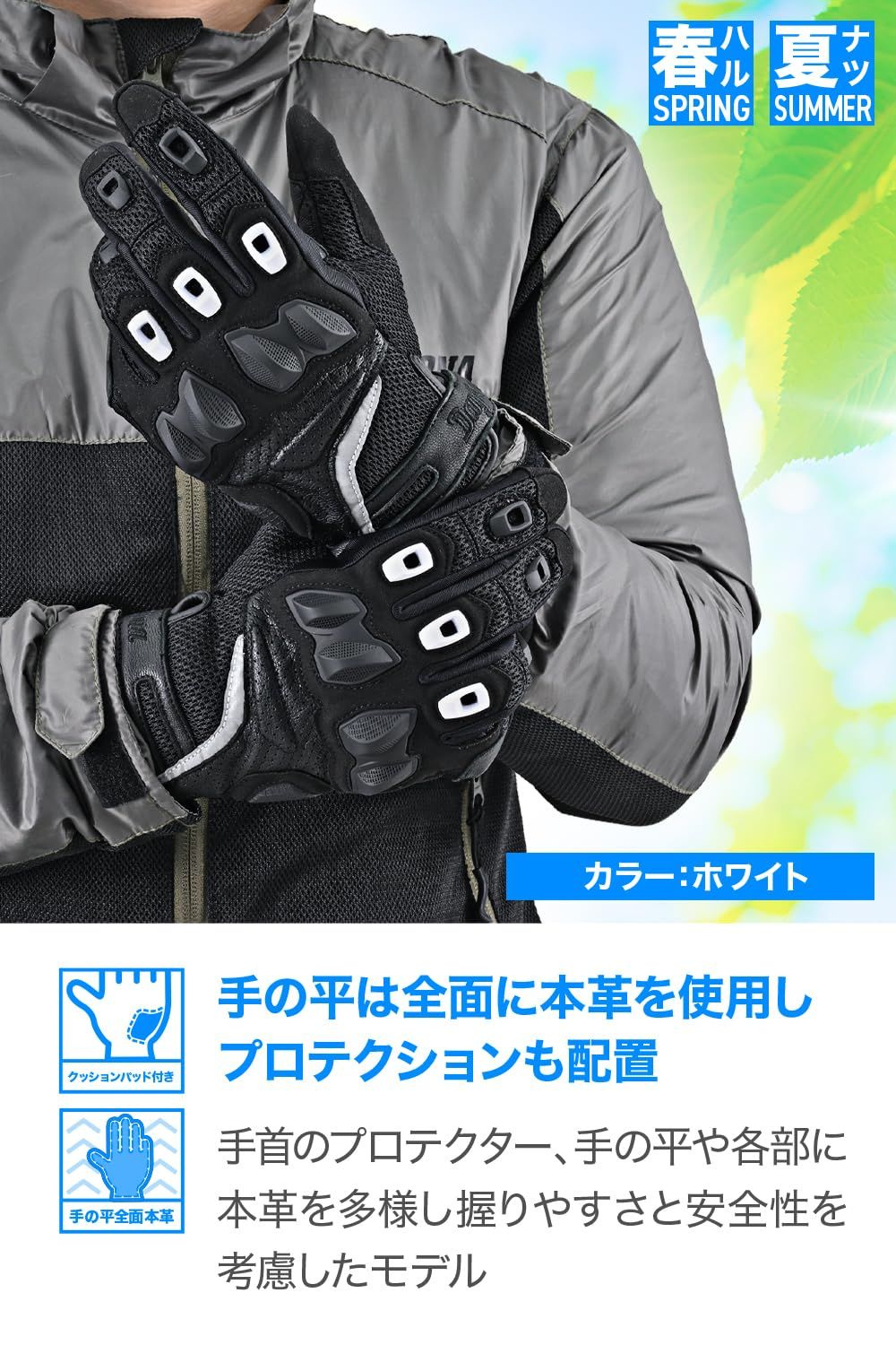 デイトナ(Daytona) バイク グローブ 夏 メッシュ 革(ヤギ革) ハードプロテクター スマホ対応 メッシュ デュアルプロテクグローブ DG-016 ホワイト Mサイズ 61164