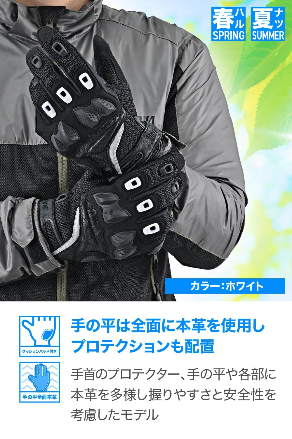 新品 デイトナ(Daytona) バイク グローブ 夏 メッシュ 革(ヤギ革) ハードプロテクター スマホ対応 メッシュ デュアルプロテクグローブ DG-016 ホワイト Mサイズ 61164
