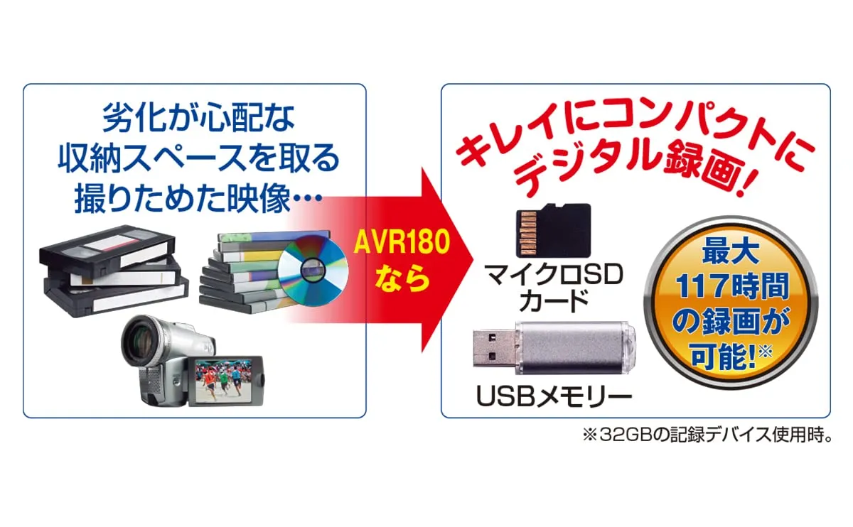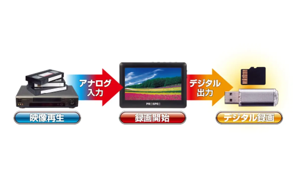 【ビデオテープの映像をマイクロSDカードに保存】アナログ映像や音源をデジタル化し、記録デバイスに保存することができます。