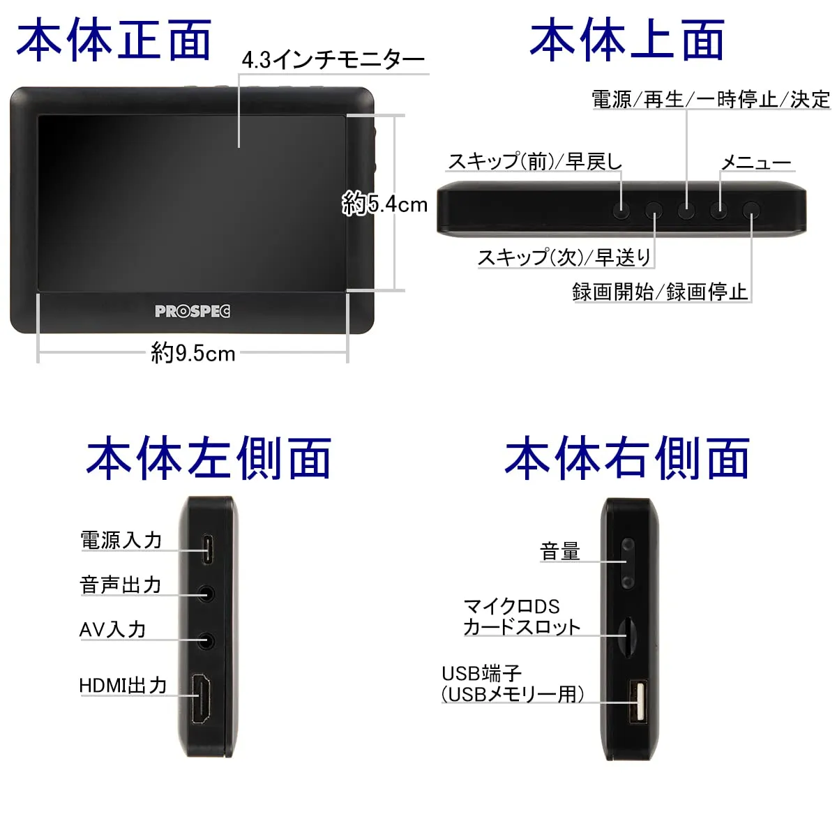 PROSPEC プロスペック アナログビデオレコーダー 4.3インチ液晶搭載 ポータブル AVR180 (単品)