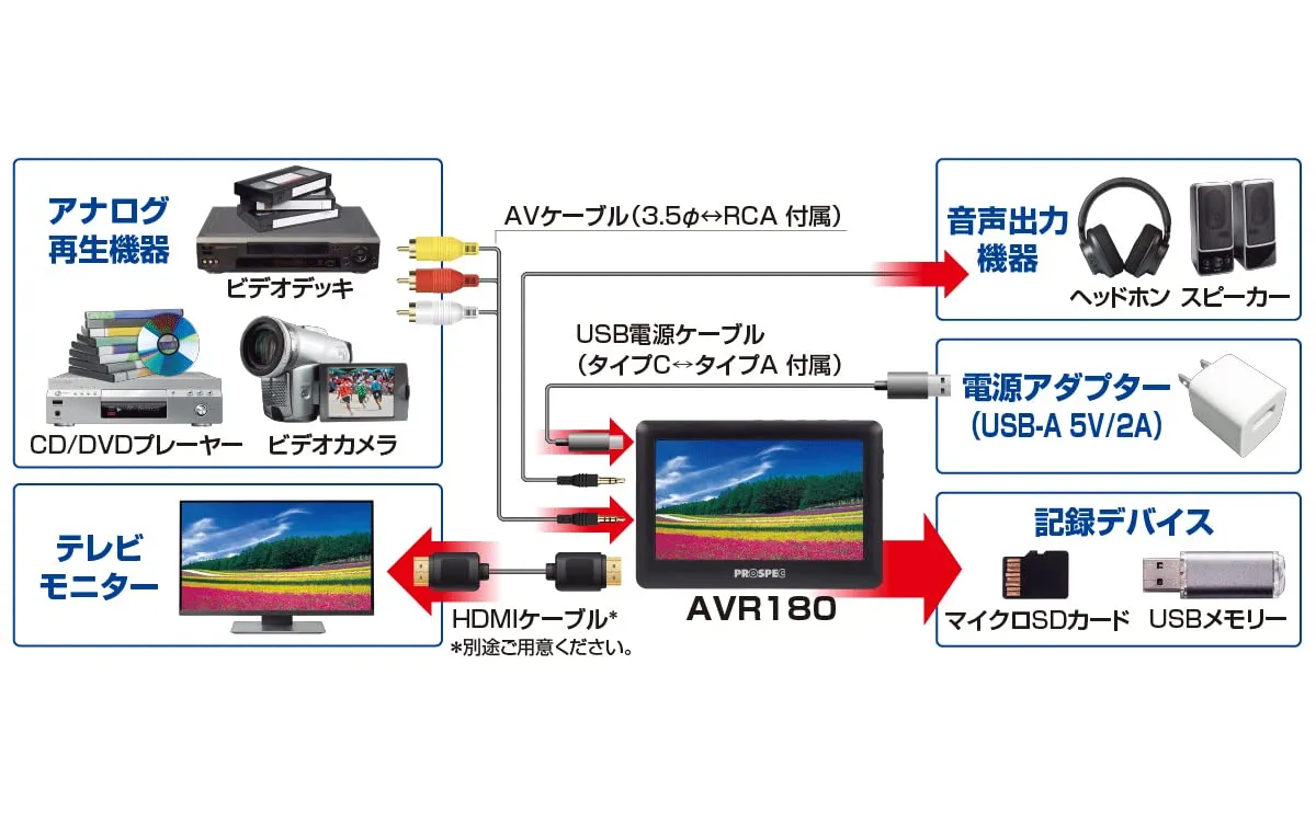 新品 PROSPEC プロスペック アナログビデオレコーダー 4.3インチ液晶搭載 ポータブル AVR180 (単品)