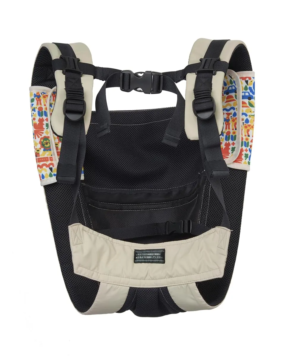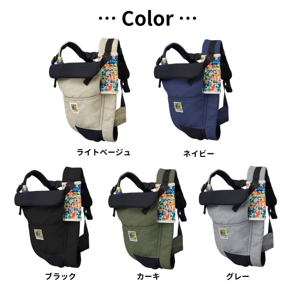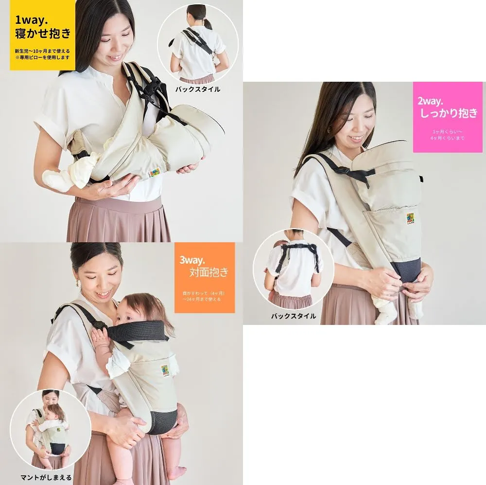 生まれてすぐから3歳まで、成長に合わせて5通りに使えます。手で抱かれれいるように抱ける寝かせ抱きと首がすわる前の対面抱きの時は、付属のピローをマントの中にセットすることで赤ちゃんの頭をしっかり&優しくホールドします。ウエストベルトが無いタイプなので腰への負担が少なく、ショルダーベルトと本体がしっかり体にフィットするので赤ちゃんが密着します。前向き抱きの時は足の開きすぎを防ぎ、おんぶや抱っこの時は本体がひざ裏までしっかり包み込んで自然なM字開脚になる構造なので、赤ちゃんも楽に座っていられます。サスペンション機能のバネ(スプリング)とダンパー(ショックアブソーバ)を搭載し、歩行時の衝撃を吸収して振動を軽減します。表生地ははっ水性のある生地で汚れにくく、裏地はメッシュ生地を使用しているので洗濯しても乾きやすいのでこまめに洗濯できます。また、専用のショルダーカバーはダブルガーゼを使用し、裏地は中に染みこまない防水生地を使用。かわいらしいデザインは「サタケシュンスケ」さんの書下ろしで、ブランド名の「u_mo(あなたも)」には不安を取り除いて育児への参加を促すメッセージがこめられています。