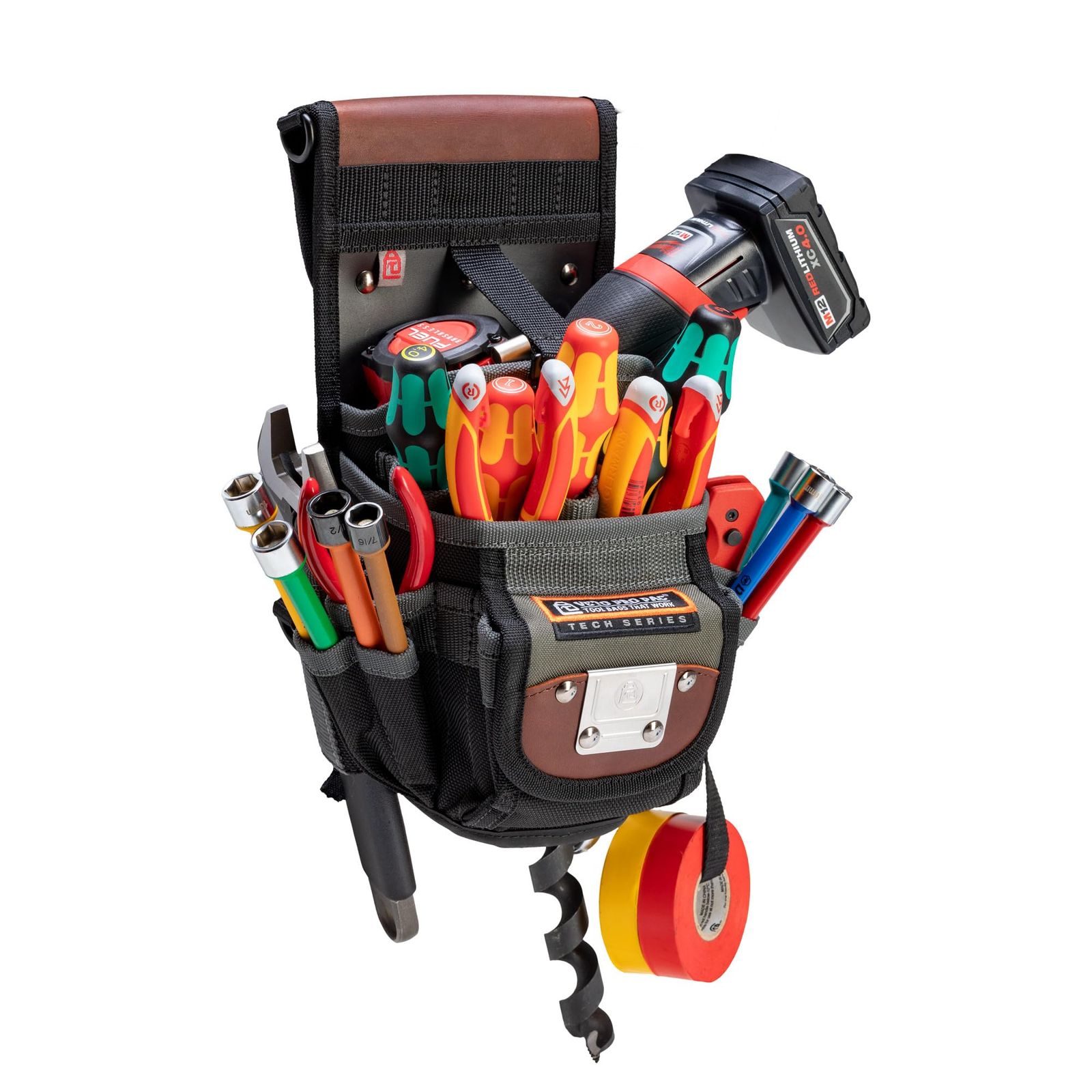 DP3は、ドリルホルスターとツールポーチの両方として機能するように設計された多機能ポーチです。 内側と外側に17個のポケットがあり、さまざまなツールを収納できます。 パススルードリルホルスターが特徴のポーチは、作業に必要なあらゆるサイズのドリルビットで、ほとんどのドリルサイズに対応します。 このポーチには、背面のMOLLEストラップに取り付けられた取り外しと位置変更が可能なベルトクリップ(RBC)が含まれています。 RBCは、DP3をベルトや大きなツールバッグに取り付けることができます。 また、このポーチには安定したソフトサイド合成ゴム裏地のベースがあり、自立することができます。 軽量の旅行を好む方も、サービスコール用のクイックグラブバッグが必要な場合でも、現在のツールバッグ用の追加ストレージが必要な場合でも、この万能ポーチはツール収納の武器として最適です。