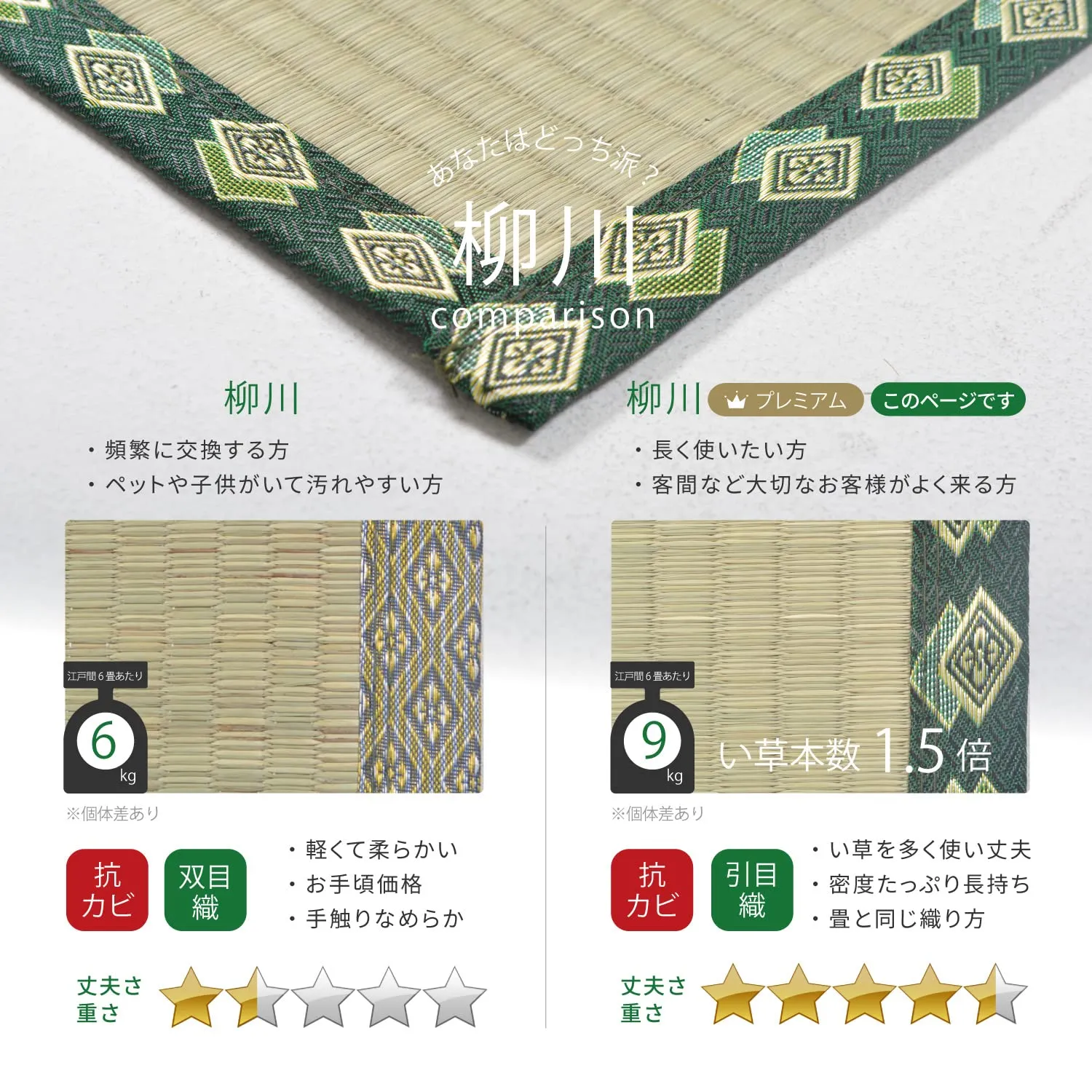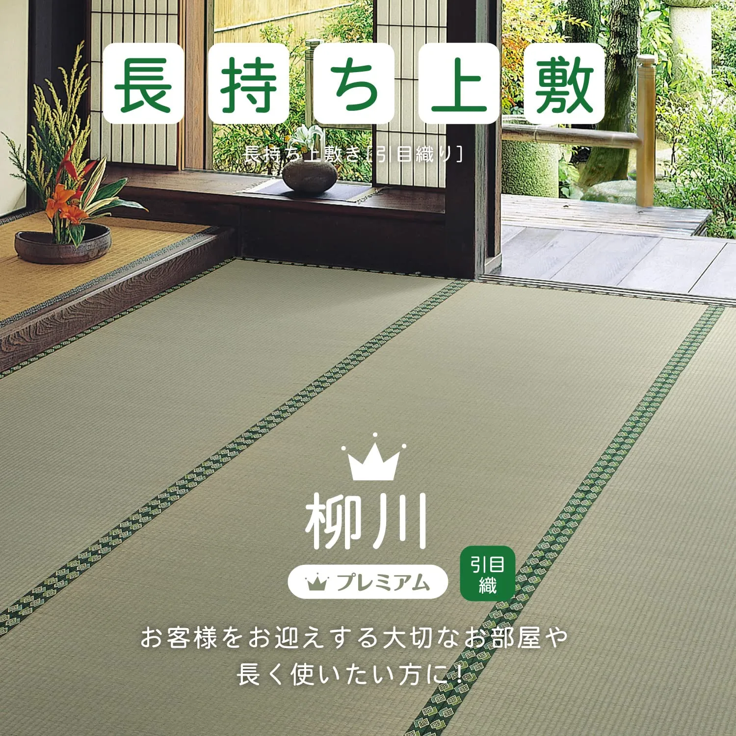 萩原 い草カーペット 上敷き 柳川プレミアム 本間8畳 長持ち 丈夫 和室 無地