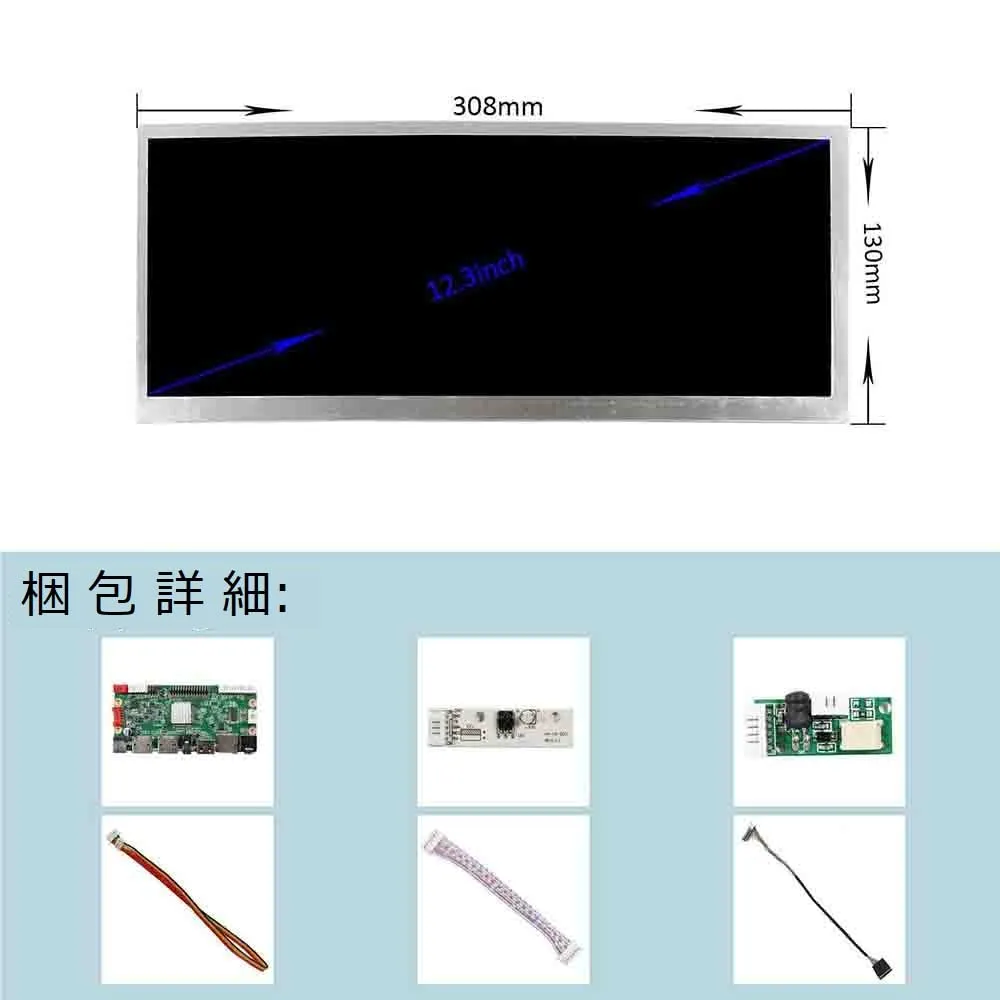 新品 VSDISPLAY 12.3インチ液晶パネル 高輝度 解像度1920x720 LCDコントローラ基板キット (HD USB SD AV 基板+12.31920x720液晶)